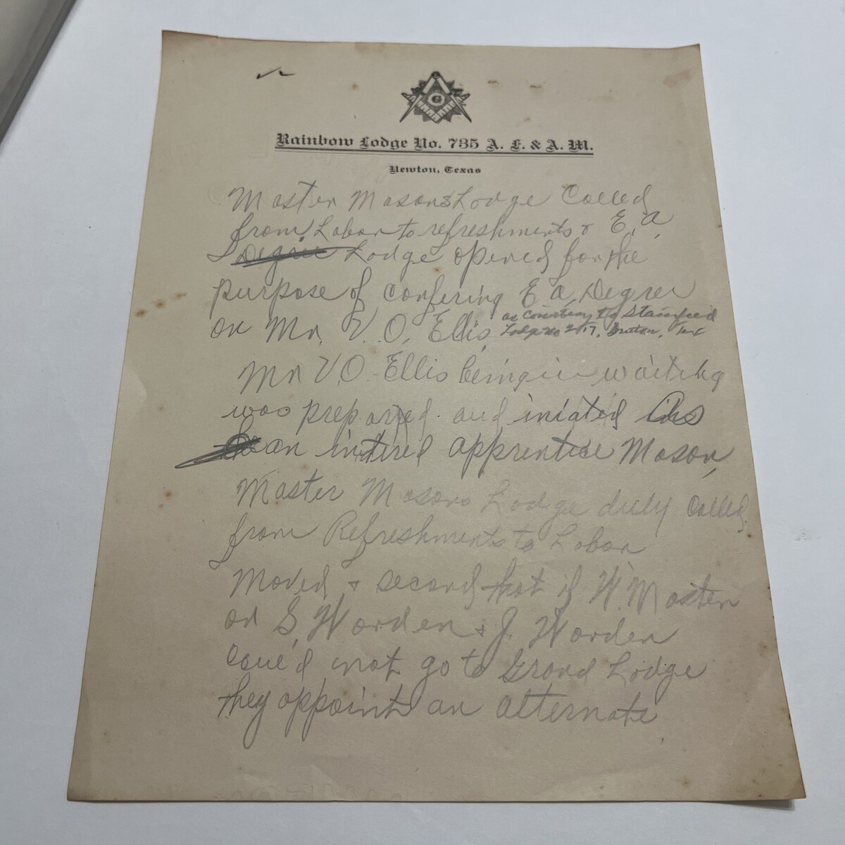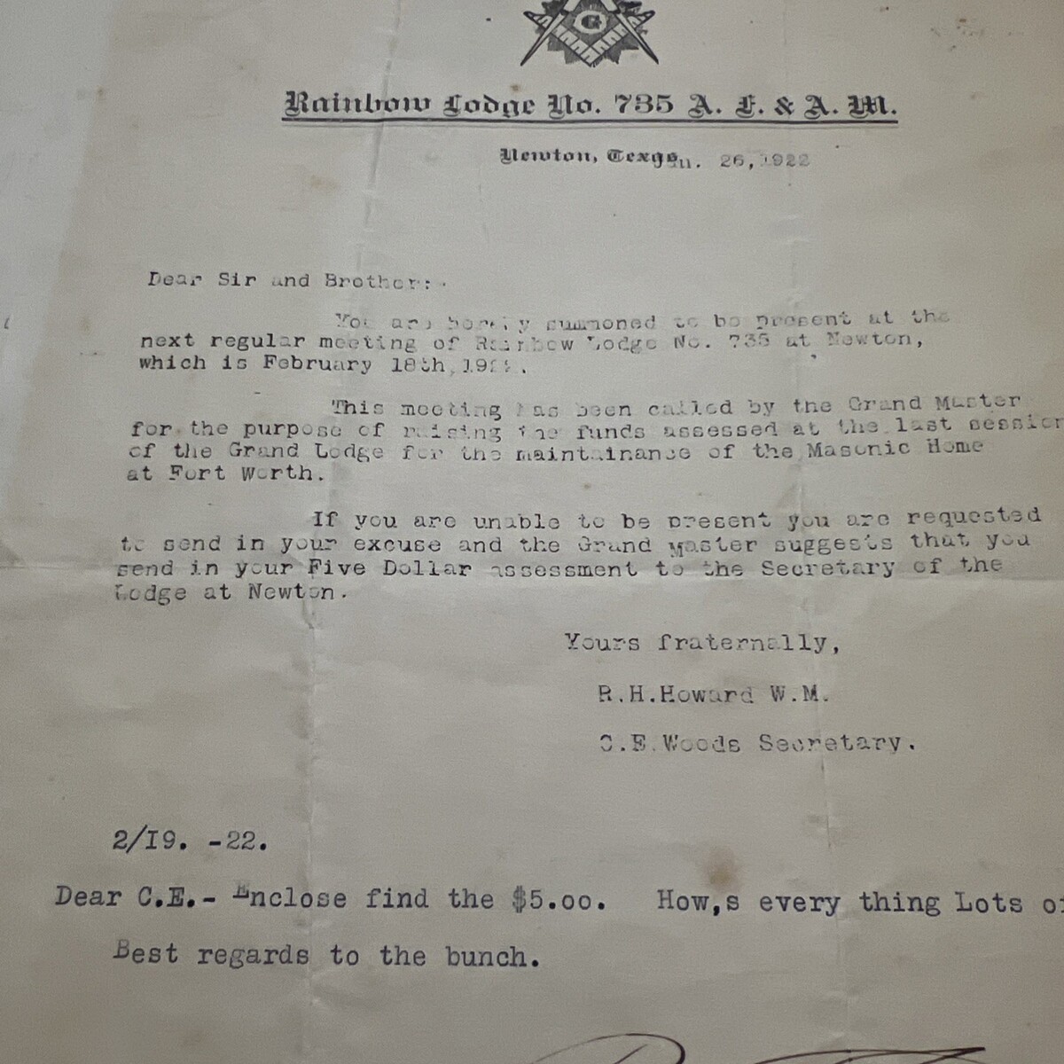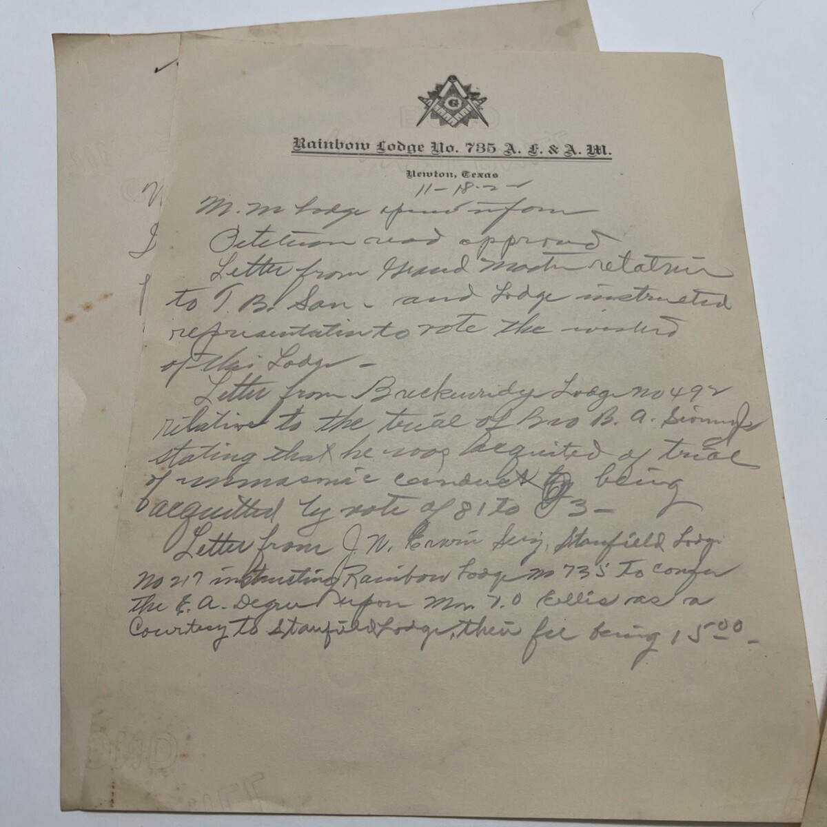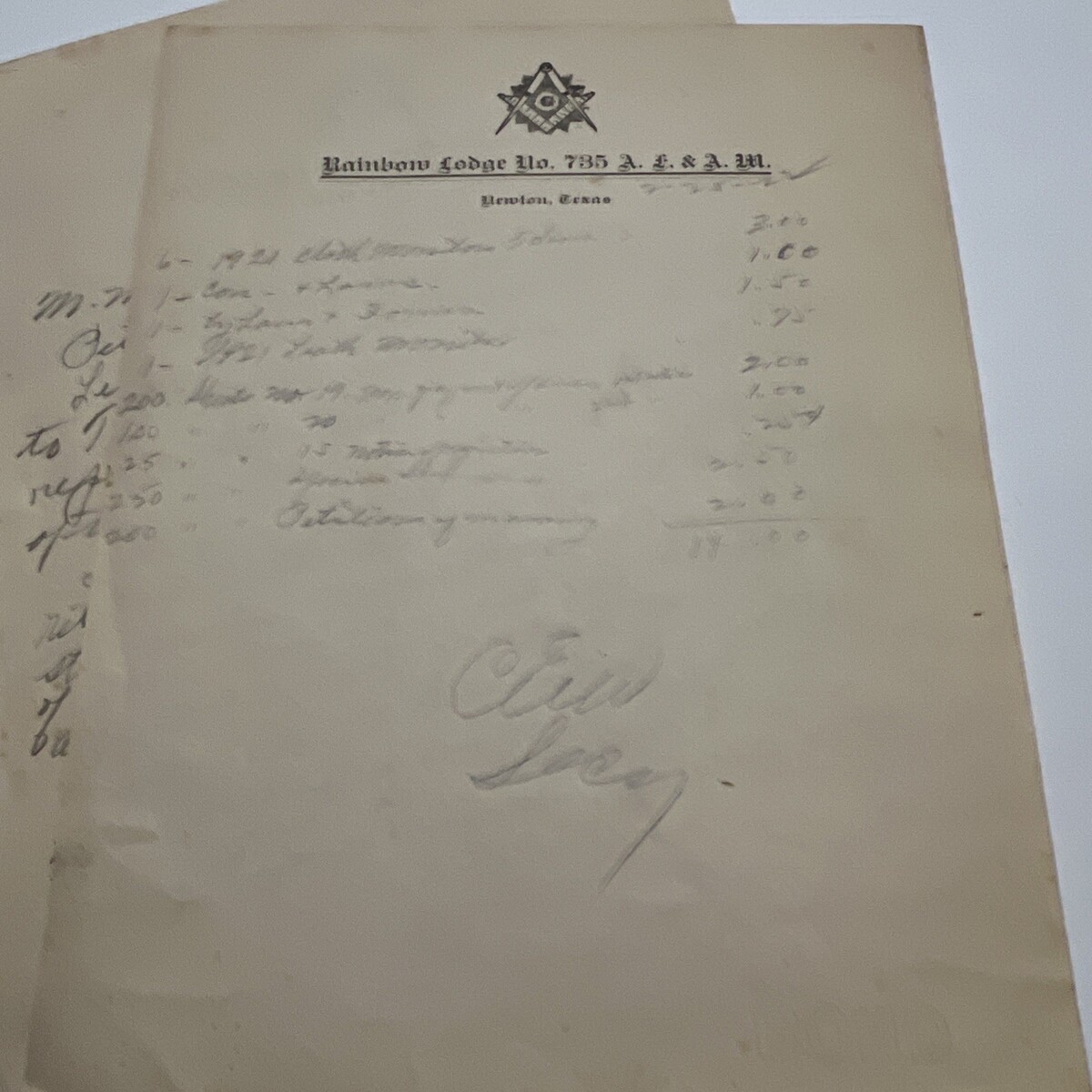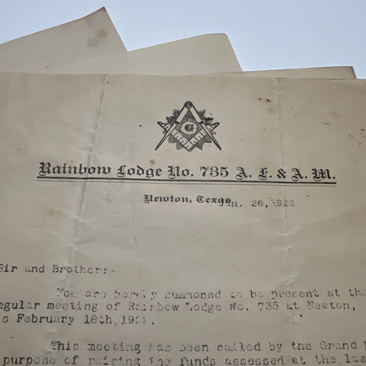 - Masonic Letterhead Rainbow Lodge No. 735 Newton Texas A.F. & A.M 1922