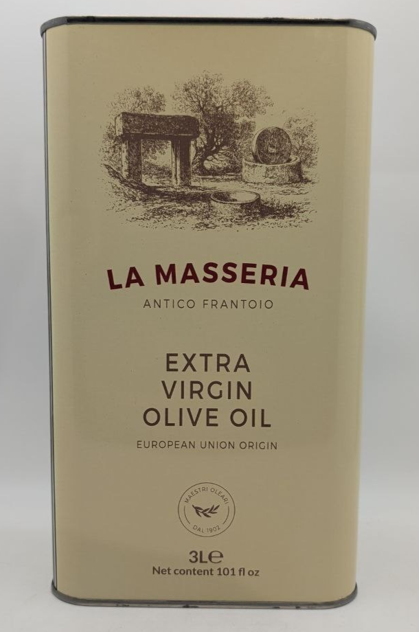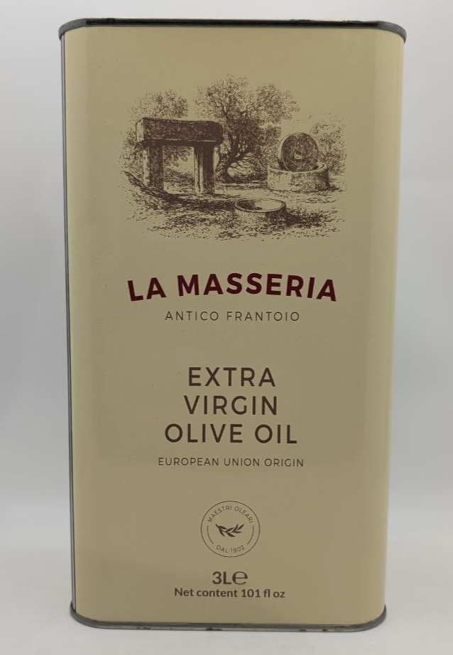 Masseria Extra Virgin Olive Oil Italy Kosher Halal 101 Oz 3L Metal Can Wholesale
