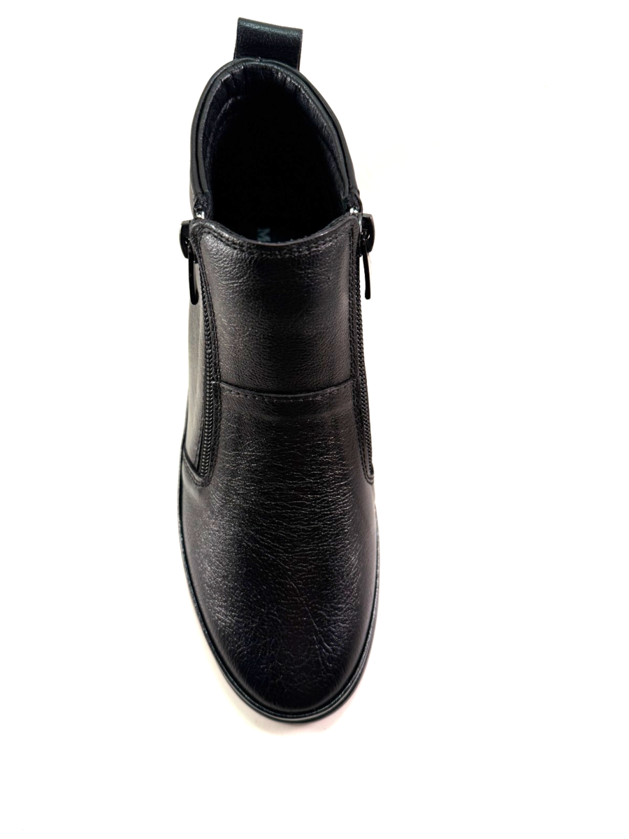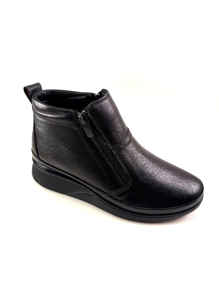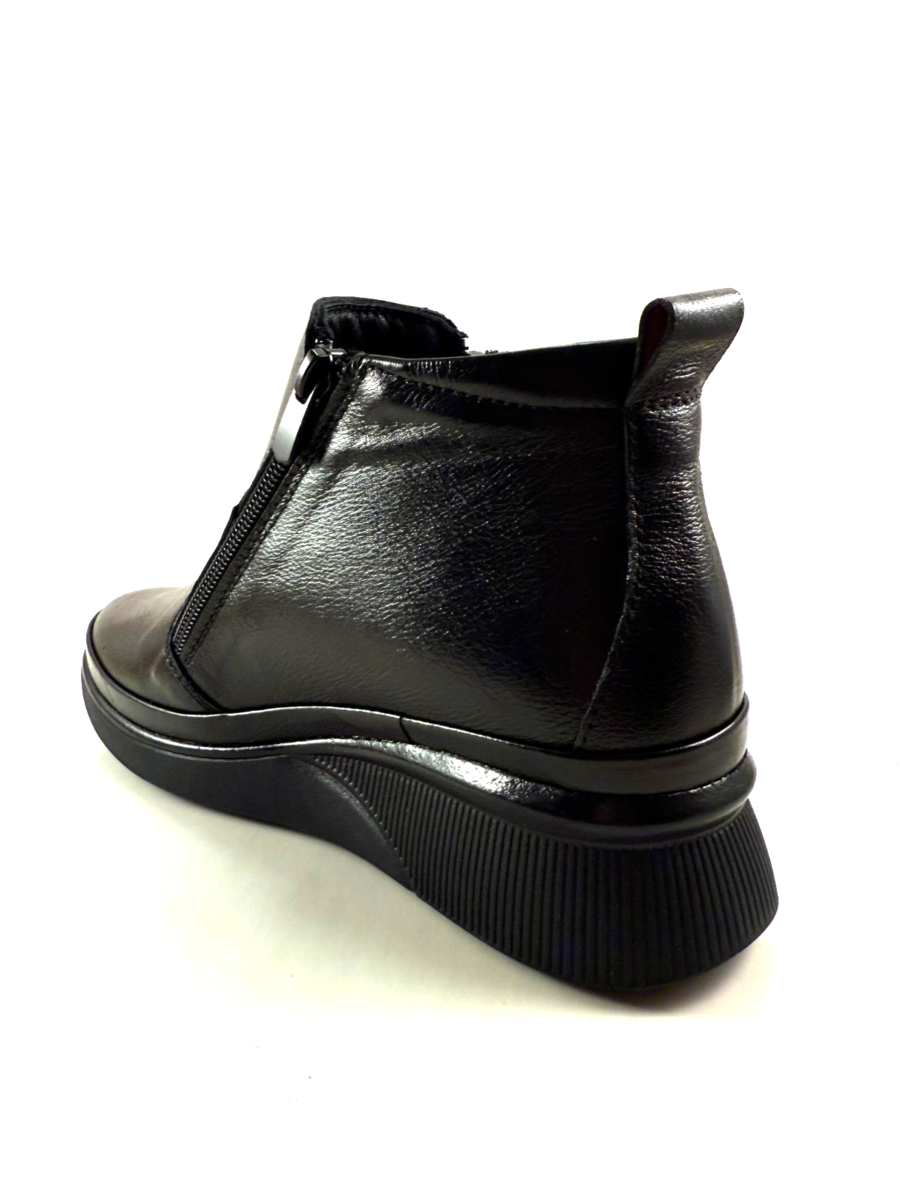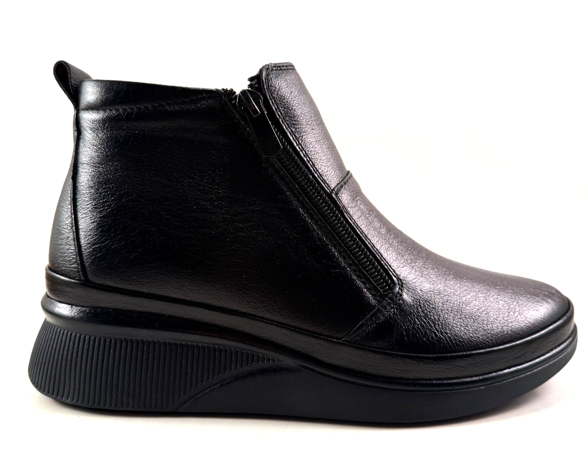 The Mastic Soul by Bonavi 061 Leather Low Wedge Ankle Bootie is a stylish and practical choice for women on the go. Made of durable leather with a comfortable rubber outsole, these ankle booties feature a low wedge heel for added support and a square toe for a modern look. Perfect for casual outings, travel, or workwear, these versatile boots are perfect for the fall and spring seasons. The zip closure and leather upper and insole ensure a secure and comfortable fit, making them a wardrobe staple for any woman in need of a reliable and fashionable footwear option. 1.5'' Wedge Arch Support leather insole. 2 Side Zippers Rubber Bottom. Full European sizes only.
