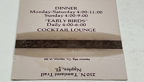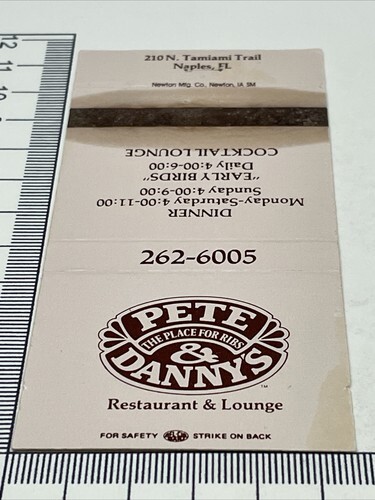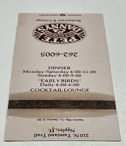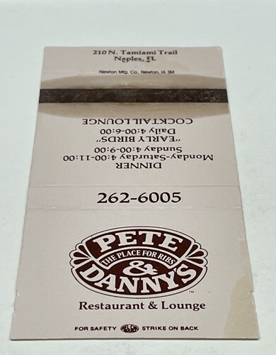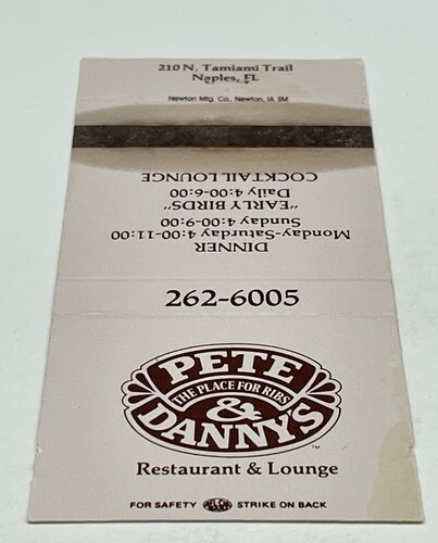 Matchbook Cover Pete & Danny’s Restaurant & Lounge Naples, FL Unstruck gmg