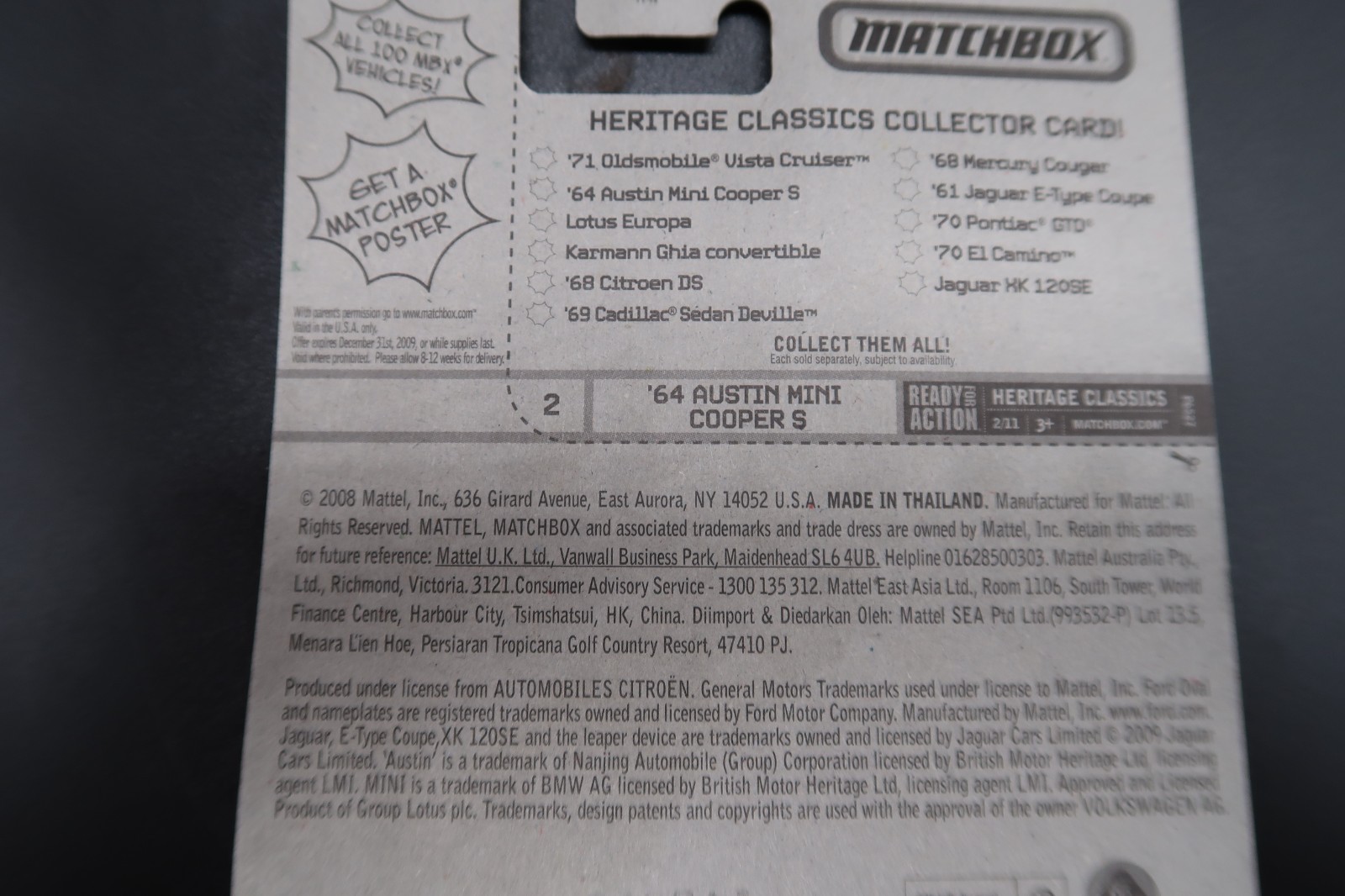 Matchbox '64 Austin Mini Cooper S 2008 Heritage Classics series #2 NOC NOS NRFP