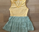 Matilda Jane Women's "Sunshine Ahead" sleeveless top features a vibrant yellow striped pattern paired with a delicate green floral design. Perfect for casual outings, it offers a fresh and trendy look. Size: Small Material: 95% cotton 5% spandex Condition: Excellent preowned - no signs of wear. Measurements lying flat (approx): - 16.5" underarm to underarm - 28" shoulder to hem length