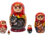 Primary image for Matryoshka  Holding Cat Nesting Doll 5pc MINIATURE  2" 100% Natural Linden Wood