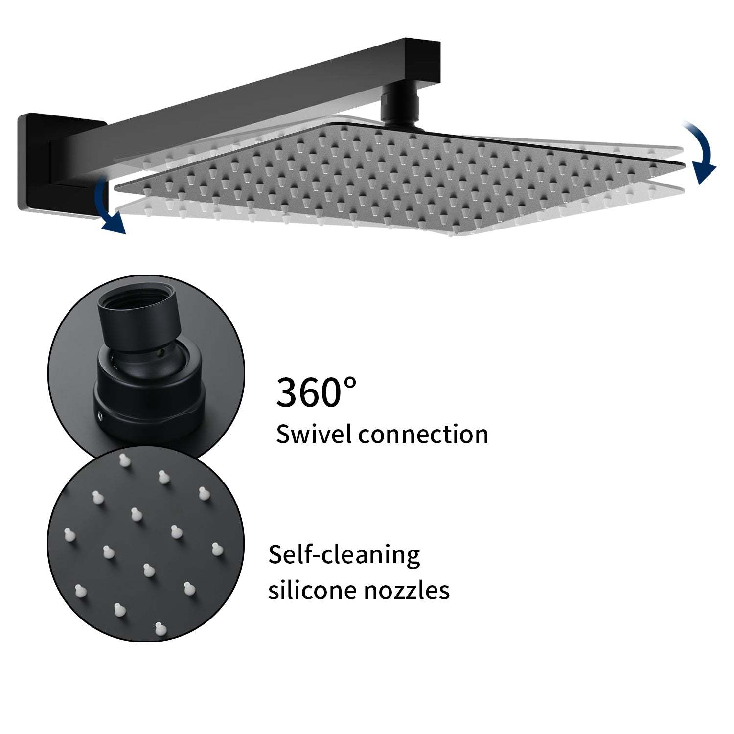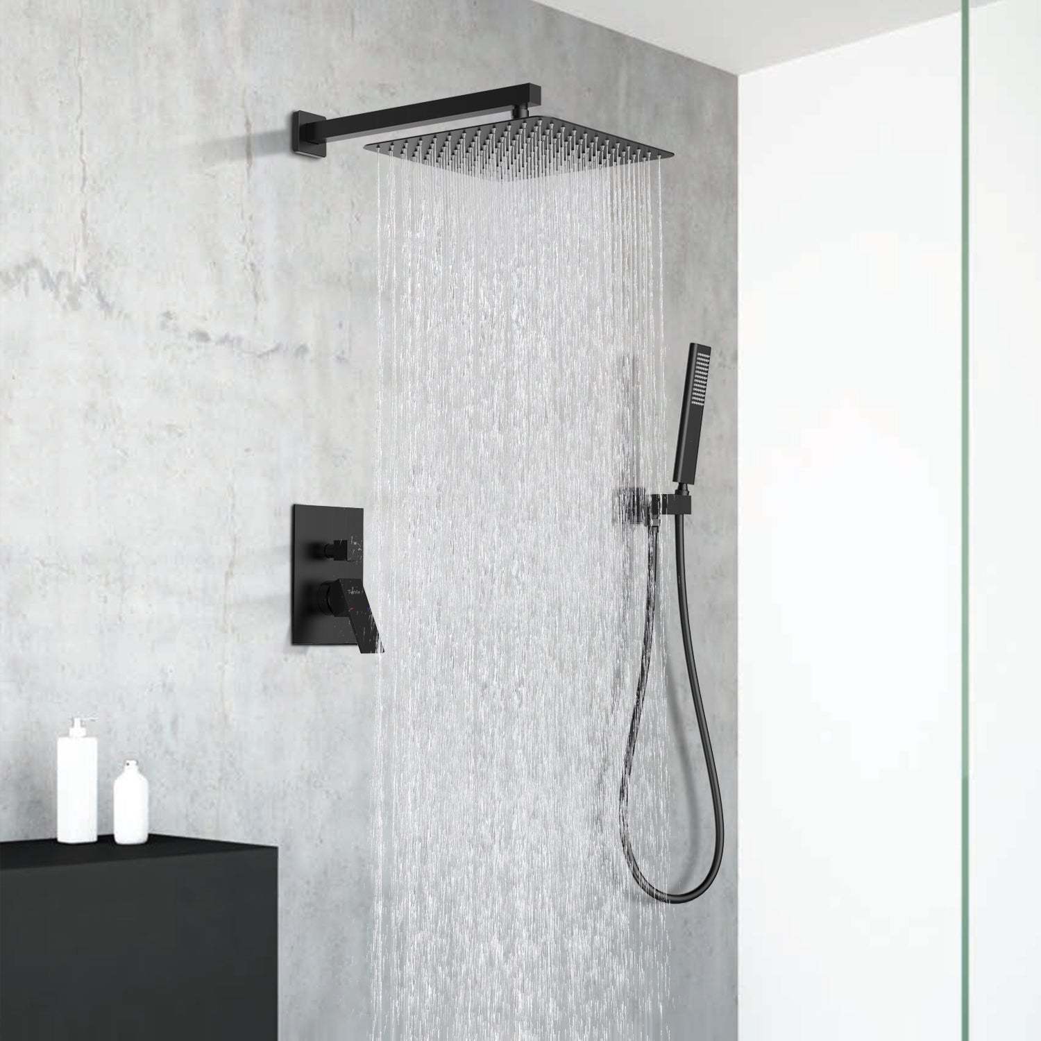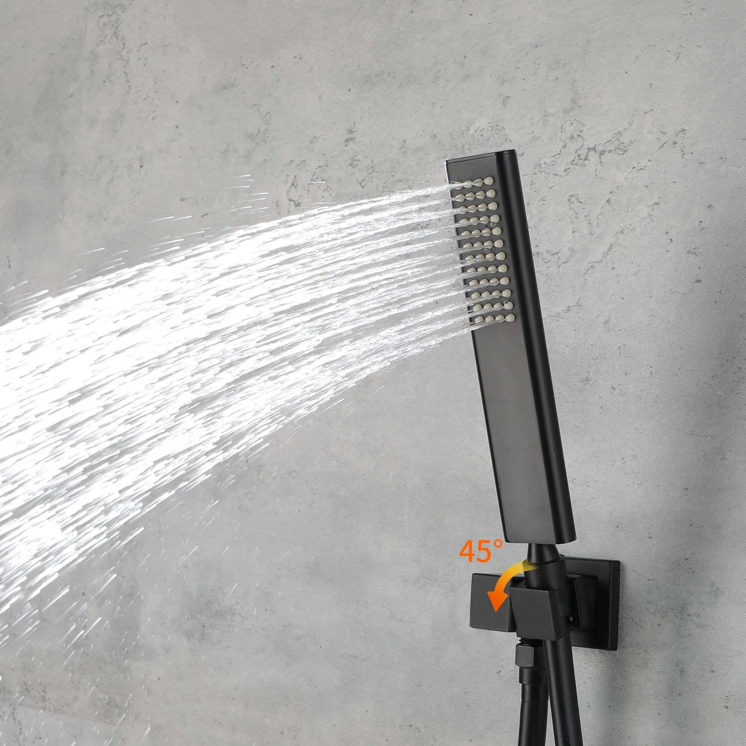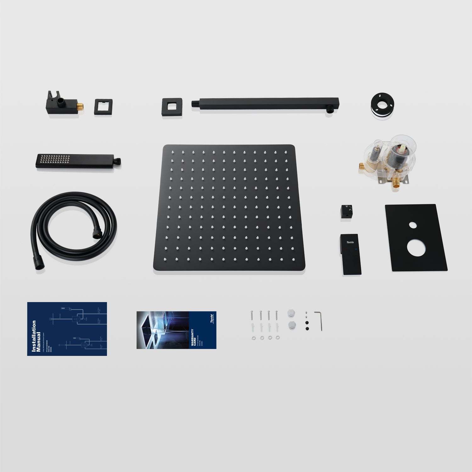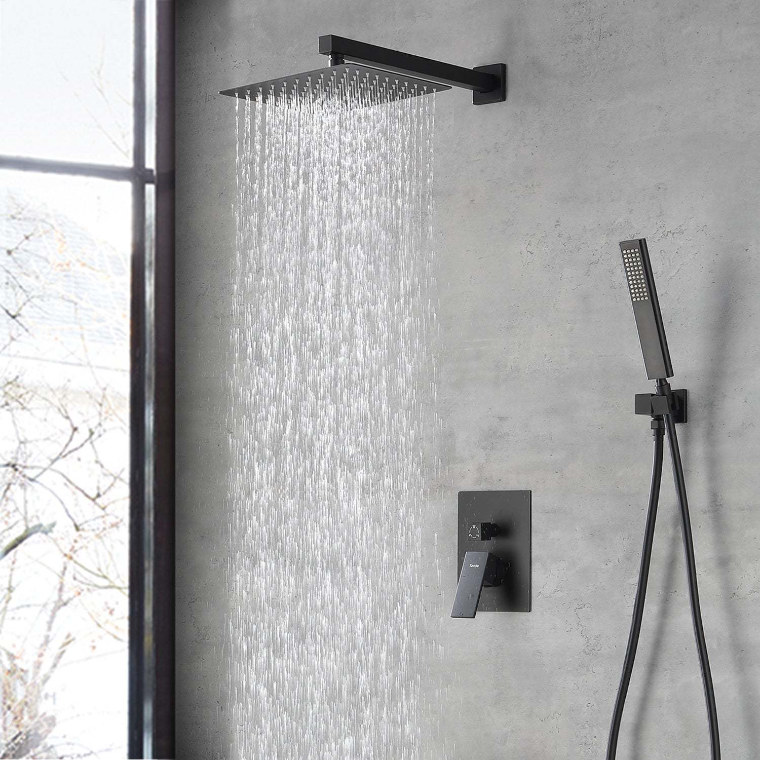 ?Easy To Install: Tenfe black shower fixtures are designed for easy installation with standard-sized NPT 1/2? tapered threads, compatible with most pipes types like: copper, PVC and PEX tubes etc. Shower Faucet Combo Included: 10 inch square rainfall shower head and arm, bathtub faucet, handheld shower head and holder, shower hose and accessories.