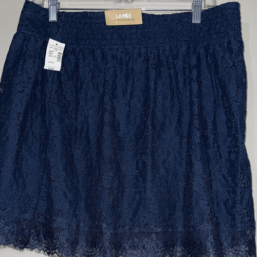 Stylish navy lace mini skirt. Perfect for versatile wear. Elegant and chic design.