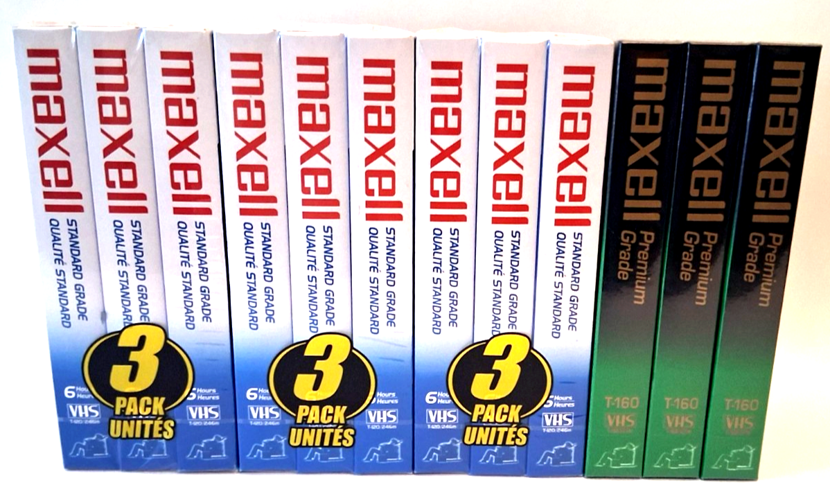 Primary image for Maxell VHS Video Cassette Tapes  Standard & Premium Grades - Lot of 12 Sealed