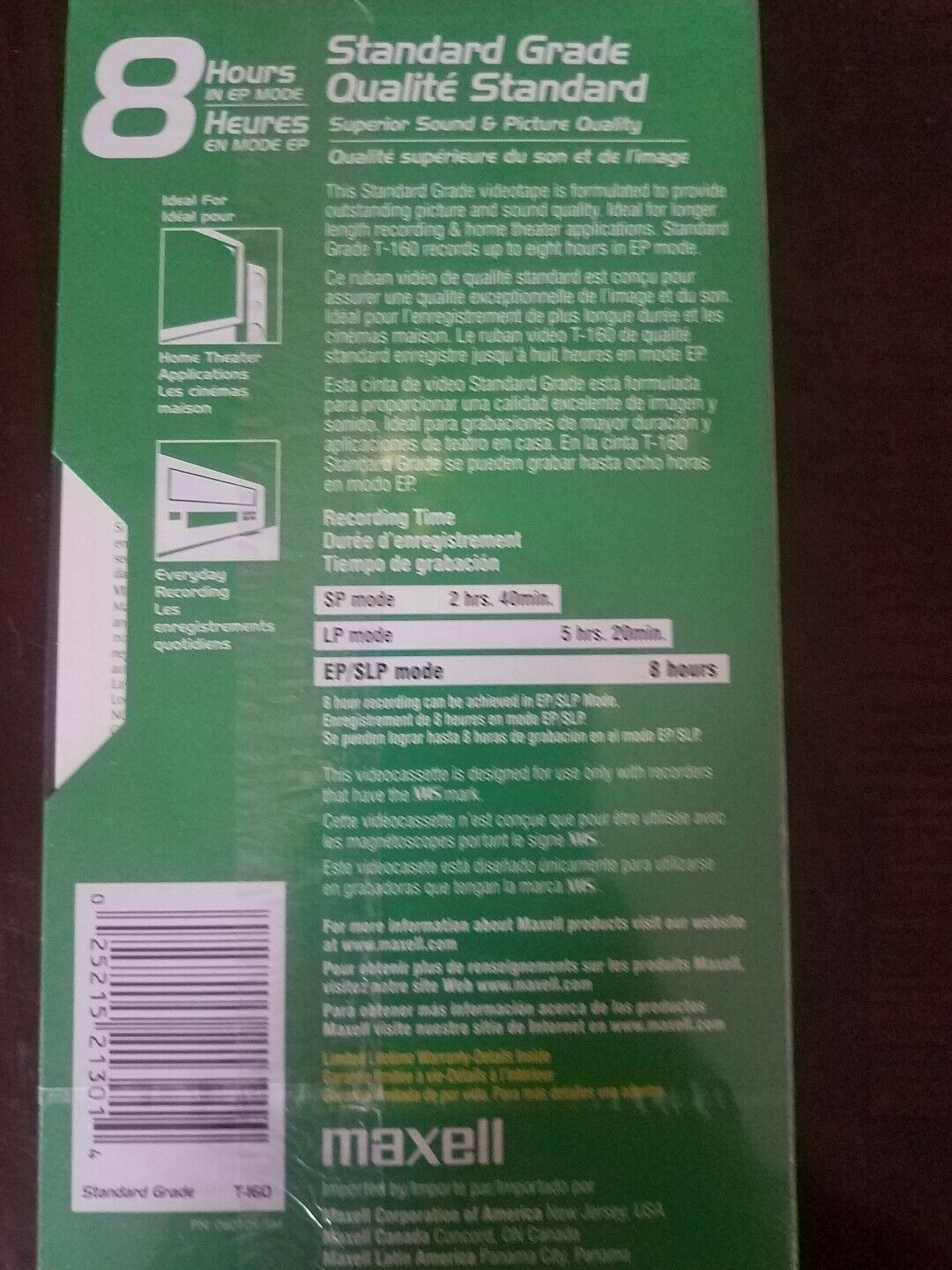 Maxell Videocassette Standard Grade T-160 8 Hours Recording VHS SEALED