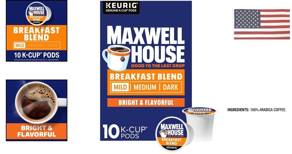 Maxwell House Breakfast Blend Mild Roast K-Cup Coffee Pods, 10 ct Box ? ? ? ? ? ? ? ? ? ? ? ? ? ? ? ? ? ? ? ? ? ? Breakfast Blend Mild Roast K-Cup Coffee Pods Indulge in the timeless pleasure of with our Breakfast Blend Mild Roast K-Cup Coffee Pods. Each box contains 10 perfectly crafted pods, designed to deliver the rich, smooth flavor you love. Features: The Classic Taste: Enjoy a delicious brew filled with a rich aroma and strong, full-bodied flavor. Always Delicious: Bright and flavorful from the first sip to the last. Start Your Day Right: A consistently great taste that allows you to start your day at its best. A Mug of Comfort: Unplug and recharge with a calming cup of coffee. Keurig Compatible: Single-serve K-Cup pods compatible with all Keurig brewers. Recyclable: Our K-Cup pods are recyclable* ? simply peel, empty, and recycle the cup. *Check locally ? Not recycled in many communities. Roasted in the USA: Proudly roasted in the USA since 1892. Benefits: Experience the perfect balance of flavor and aroma. Begin your day with a comforting and revitalizing brew. Convenient single-serve pods make brewing a breeze. Enjoy the peace of mind from our recyclable K-Cup pods. Rich tradition of quality coffee enjoyed for over a century. Why choose Breakfast Blend? In a world filled with hustle, break away with the comforting embrace of Breakfast Blend. Perfect for any time of day, this mild roast coffee elevates your moments of pause and rejuvenation. Brew yourself a steaming cup and enjoy the rich taste that is consistently delicious ? a flavor experience designed to fuel your ambitions. Unleash your potential with each cup ? order your 10-count box of Breakfast Blend Mild Roast K-Cup Coffee Pods today and savor the blend that inspires! Shipping Free Fast Shipping - We offer free shipping to most of the USA with a normal delivery time of 3-7 days. However, due to the current situation, additional delivery time (up to 3 weeks) may be required for some items. Alternative Carriers - We may use alternative carriers (e.g. USPS, FedEx, UPS, etc.) to ensure your package arrives safely and on time. Due to the use of multiple carriers, we are unable to provide a tracking number automatically. Handling Time - Orders are processed and shipped within 1-2 business days of receiving cleared payment. Shipping Restrictions - Shipping to Alaska, Hawaii, Puerto Rico, Guam, and other US territories may incur shipping charges or delivery restrictions. Please contact us before ordering, or your order can be refunded/cancelled. State Restrictions - There may be restrictions based on your state of purchase. For example, certain items may not be shipped to California due to state regulations. Contact for Tracking Updates - If you require tracking updates or have any concerns about the delivery of your order, please feel free to contact us, and we will be happy to assist you. Return 30-Day Hassle-Free Returns - We want you to be completely satisfied with your purchase. If you are not, you can return the item within 30 days of receiving it for a full refund or exchange. Easy Return Process - To start a return, simply contact us and we will provide you with a prepaid return shipping label and detailed instructions. Restocking Fee - There are no restocking fees for returns. However, the buyer is responsible for return shipping costs if the return is not due to a seller's error. Refund Processing Time - Refunds will be processed within 5 business days of receiving the returned item in its condition. Payment We accept all major credit cards, PayPal, and Apple Pay for your convenience. Your payment information is secure and encrypted to ensure a safe and seamless transaction. Please complete your payment within 3 days of purchase to avoid any delays in shipping. Feedback Your feedback is extremely important to us. We strive to provide the best products and customer service possible. If you are satisfied with your purchase, please take a moment to leave us a positive review. If you have any concerns or issues with your order, please contact us before leaving negative feedback. We are committed to resolving any problems and ensuring your satisfaction. Contact Us If you have any questions or concerns, please feel free to out to our customer support team. You can contact us through the messaging system. We are available Monday to Friday, 9:00 am to 5:00 pm EST, and we will do our best to respond to your inquiry within 24 hours. Buy it now and enjoy a pleasant shopping experience! UPC: 043000065037 Expiration Date: Not specified Calories per 100 g/mL: Not specified Course: Beverage Number in Pack: 10 Product Name: Maxwell House Breakfast Blend Light Roast K-Cup Coffee Pods Style: Breakfast Blend Unit Quantity: 1 Compatibility: Keurig Flavor: Breakfast Blend Food Specifications: Recyclable Allergens: 100% PURE COFFEE. MPN: Does not apply Product: Coffee Pod Capsule Type: Breakfast Blend Calories per Serving: Less Than 50 Number of Servings: 10 Serving Size: 1 Cup Roast: Mild Item Weight: 34.64 ounces