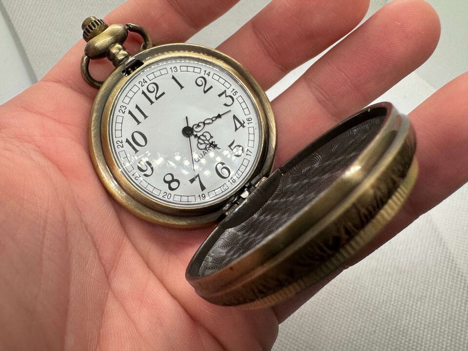 Crafted from durable materials, these pocket watches boast a vintage aesthetic that enhances their authenticity and charm of yesteryears. Powered by a reliable quartz movement, this timepiece guarantees precise timekeeping. The dial, adorned with Arabic numerals, is safeguarded by a strong glass lens that is resistant to scratches.