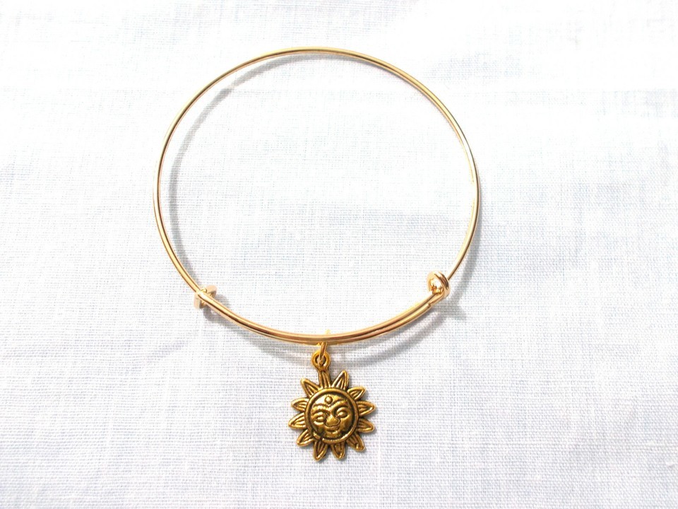 - MAYAN SUN GOD DETAILED CHARM ON GOLDTONE ADJUSTABLE BANGLE BRACELET