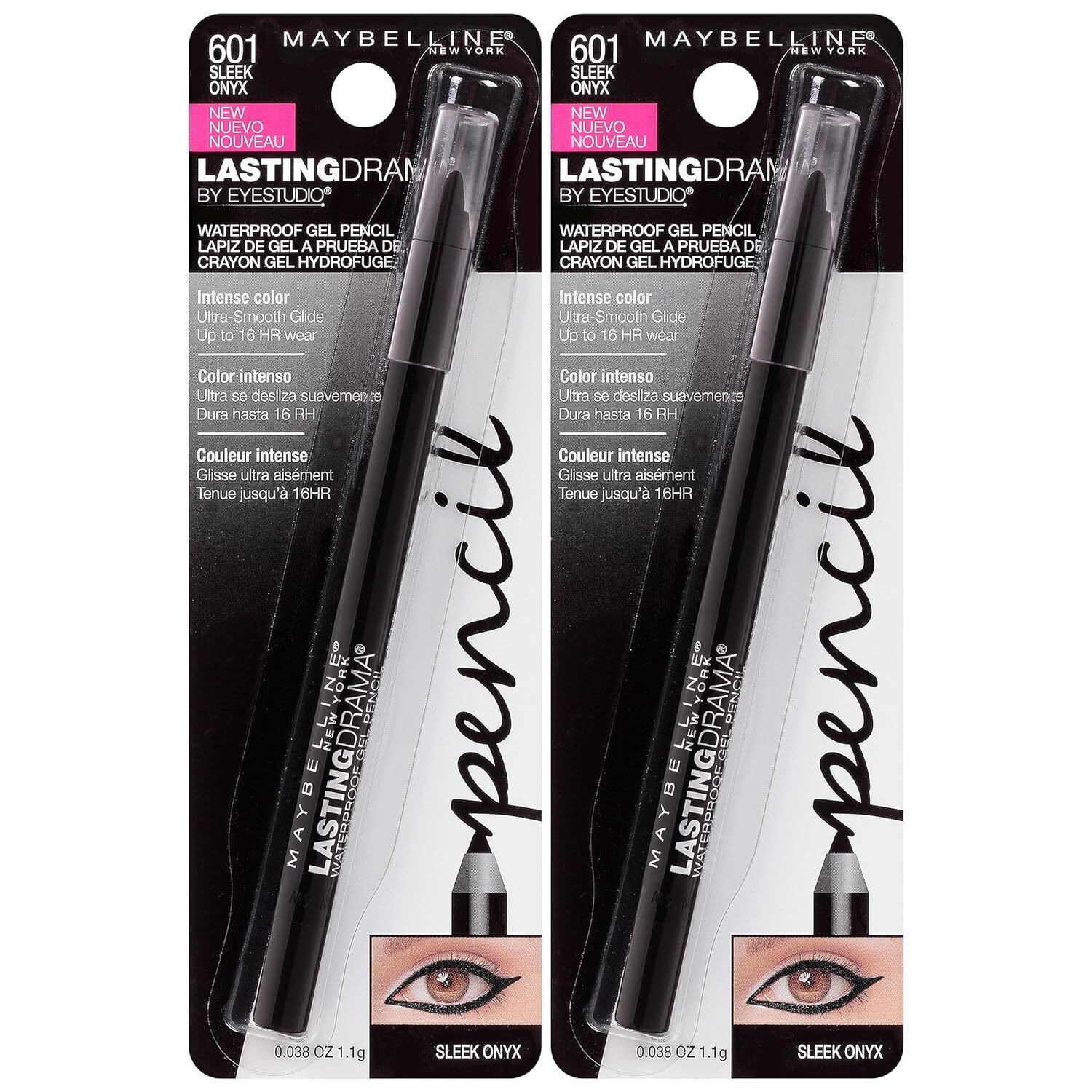 Maybelline New York Eyestudio Lasting Drama Waterproof Gel Pencil Makeup, Sleek Onyx, 2 Count