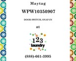 123 Laundry Solutions carries commercial laundry parts for all major brands. We offer commercial washer parts and commercial dryer parts at discounted prices. Purchase this Maytag-WPW10350907-DOOR SWITCH, SNAP-IN to repair your commercial laundry equipment and save money today.