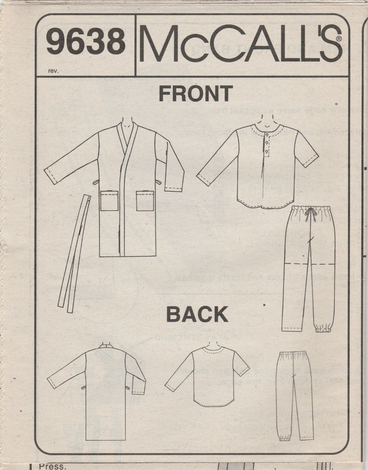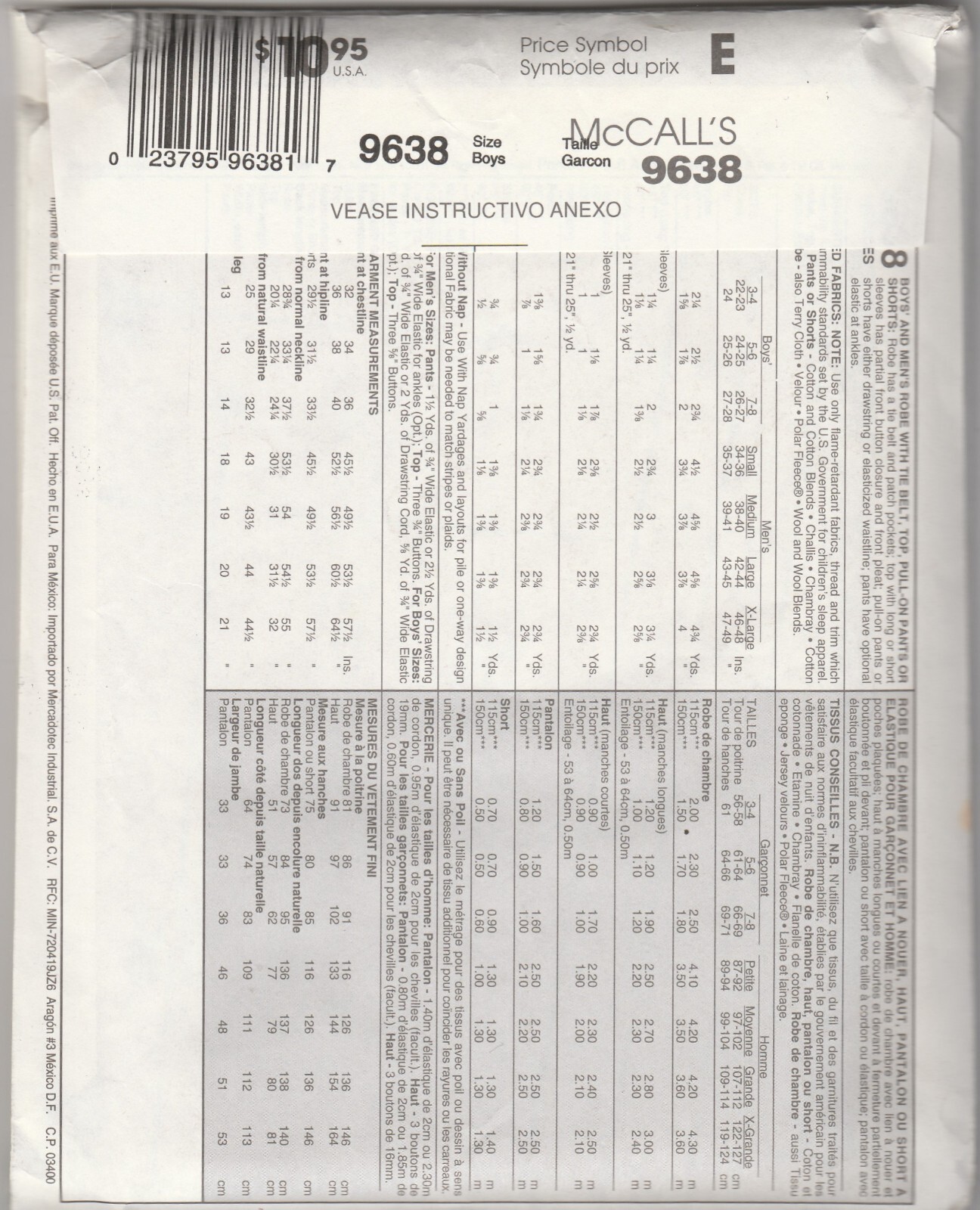 Primary image for McCALLS 9638 Boy's & Men's Robe with tie Belt, Top, Pull-on Pants/Shorts PATTERN