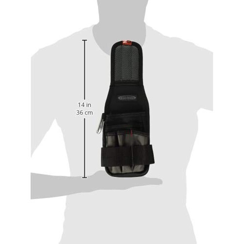 This multi-pocket tool holder is ideal for small jobs or the DIYer. Two webbing loops can be used for carrying a hammer, keys, etc. Metal clip to clip on the belt for a convenient carrying option.