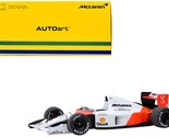 Brand new 1/18 scale car model of McLaren Honda MP4/6 #1 Ayrton Senna 2nd Place Formula One F1 Japanese GP (1991) (with McLaren Logo) model car by Autoart. Brand new box. Real rubber tires. True-to-scale detail. Has steerable wheels. Detailed interior, exterior. Officially licensed product. Has detachable body with stand. Does NOT include "Marlboro" decals. Manufacturer's original unopened packaging. Dimensions approximately L-9.5, W-4.5, H-2.5 inches.