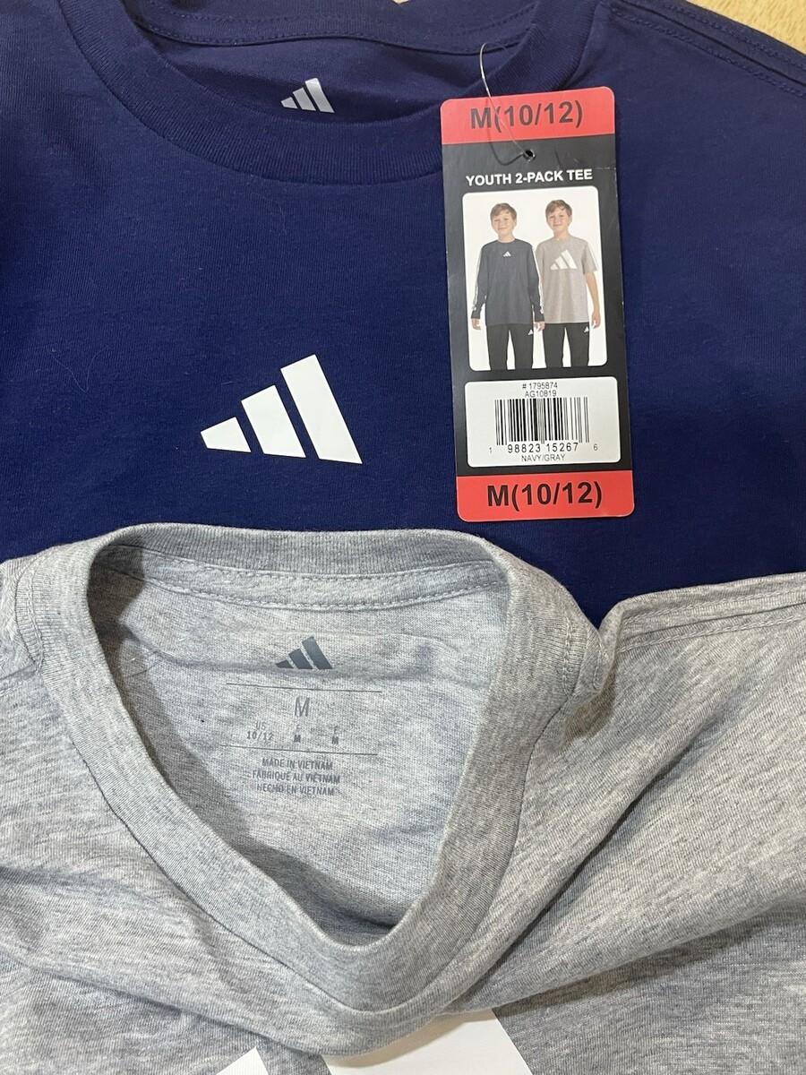 Med 10/12 Adidas Cotton 2-pack Long Sleeve -Navy & Short Sleeve-Gray Tee BNWTS