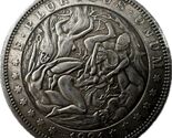 Questa squisita medaglia d'argento, una moderna coniazione dell'edizione del 1921, e un notevole e accattivante esempio di arte numismatica. Il dritto presenta un motivo tradizionale basato sull'iconico dollaro americano Morgan, affrontato con un tocco innovativo e artistico. La superficie principale e dominata da un'incisione intricata e riccamente dettagliata raffigurante una scena dinamica e drammatica di diverse figure impegnate in una lotta. Intorno a questo vivido quadro c'e l'iscrizione "E Pluribus Unum", una frase latina che significa "Tra molti, uno", che e stata a lungo associata agli ideali di unita e solidarieta, impregnando la medaglia di un profondo significato simbolico.