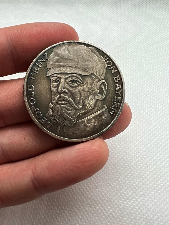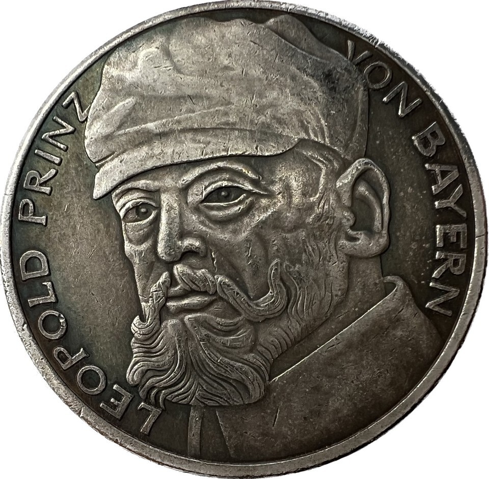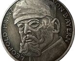 Questa squisita medaglia fantasy, intitolata "Natale sul campo 1915", presenta il ritratto del principe Leopoldo di Baviera, un importante leader militare e comandante dell'esercito tedesco durante la prima guerra mondiale. La medaglia mostra una rappresentazione splendidamente dettagliata del profilo di Leopoldo, catturando il suo aspetto distintivo e il cappello, emblematico del suo servizio in condizioni di campo. " L'iscrizione "LEOPOLD PRINZ VON BAYERN" che circonda il ritratto evidenzia il suo significato come figura chiave all'interno dell'Impero tedesco e membro della casa reale di Wittelsbach.