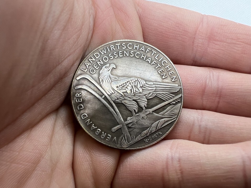 Sul retro, la medaglia mostra la frase "Für Verdienst um das Farmliche Genossenschaftswes in Sachsen Anhalt", indicando chiaramente il suo scopo: riconoscere i contributi alle cooperative agricole. Inoltre, due simboli agricoli incrociati e il nome della regione significano il riconoscimento non solo degli individui, ma anche il più ampio sostegno e sviluppo dell'agricoltura come pilastro fondamentale dell'economia locale. Questa versione di nuova realizzazione della medaglia originale e diventata un oggetto preferito tra i numismatici grazie al suo ricco simbolismo storico e regionale.
