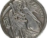 Ti presentiamo la Gothic Fantasy Medal of Death and Destiny, una reinterpretazione moderna dell'iconico dollaro americano Morgan del 1921. Questa opera d'arte unica cattura l'essenza della vita e della mortalita. Il dritto presenta un design sorprendente con la personificazione della morte che brandisce una falce, accompagnata da una figura femminile che simboleggia la vita o il destino. La composizione dinamica e drammatica trae ispirazione dall'arte gotica, presentando un ricco arazzo di simbolismo che parla all'inevitabilita dell'esistenza.
