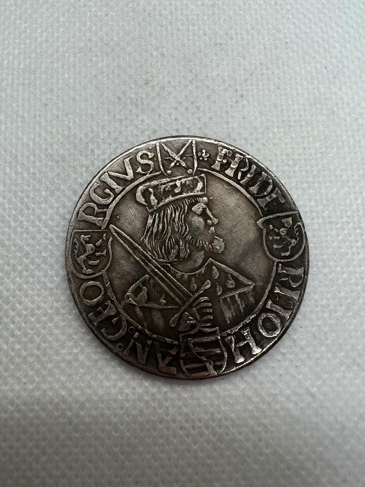 Questa squisita replica storica del tallero con Federico il Sassone e un pezzo notevole che mostra una figura influente nella storia sassone. Con la sua intricata arte emblematica della monetazione tardo medievale, questo oggetto da collezione offre uno sguardo unico nel passato. Il dritto della moneta presenta un dettagliato ritratto di Federico, circondato dalla scritta "FRIDERICUS", accompagnato dai simboli araldici rappresentativi della regione.