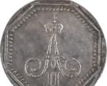 Il dritto mostra il monogramma elegantemente inciso dello zar Alessandro II, coronato e accompagnato da iniziali stilizzate e dal numero ?II.? Come sovrano dal 1855 al 1881, Alessandro II e affettuosamente ricordato come lo ?zar liberatore? per il suo ruolo fondamentale nell?emancipazione dei servi della gleba e per attuare riforme ambiziose volte a modernizzare l'impero. Racchiuso all'interno di un raffinato bordo ottagonale, questo medaglione racchiude splendidamente la sobria grandezza e dignita che si addicono alla sua epoca.