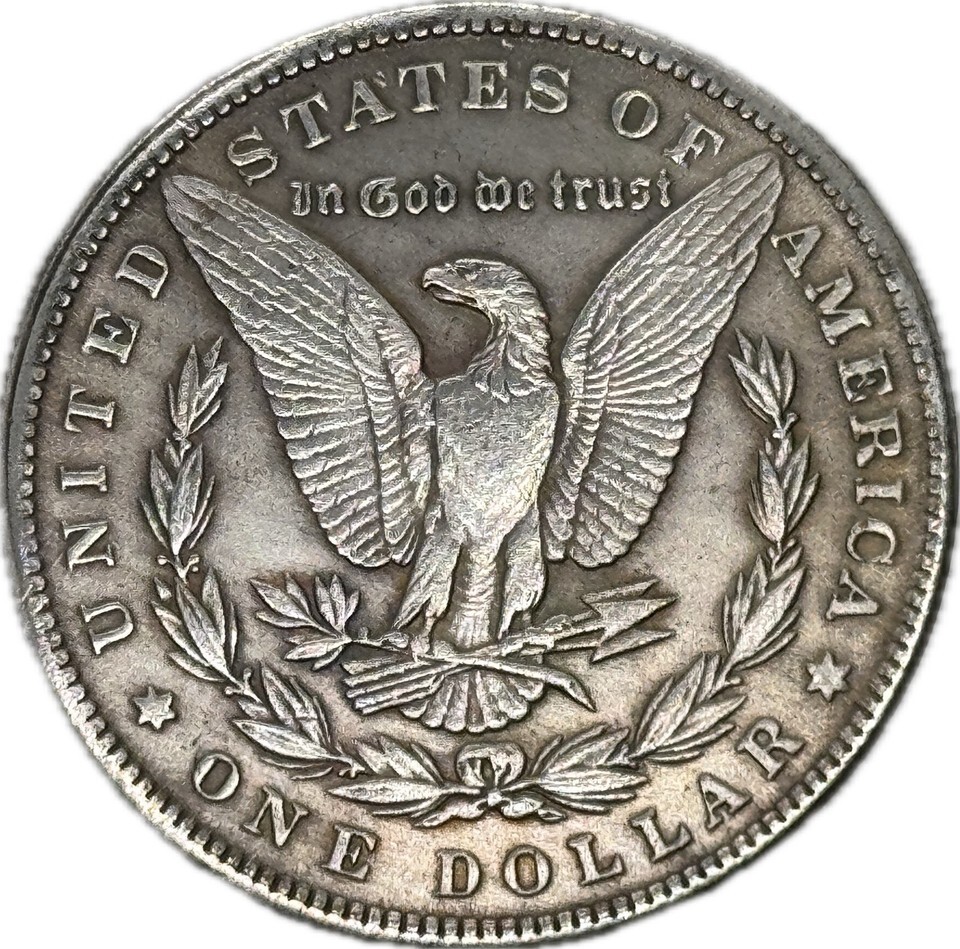 En contraste con el diseño clasico de la moneda historica, el artista ha infundido una nueva expresion oscuramente hermosa vinculada al misticismo. El reverso mantiene el motivo tradicional de la heraldica del aguila de los Estados Unidos, proporcionando un contraste sorprendente con el anverso extravagante. Esta pieza artística es un testimonio de la artesanía numismatica moderna, donde grabadores talentosos transforman monedas historicas en nuevas formas con ricas narrativas.