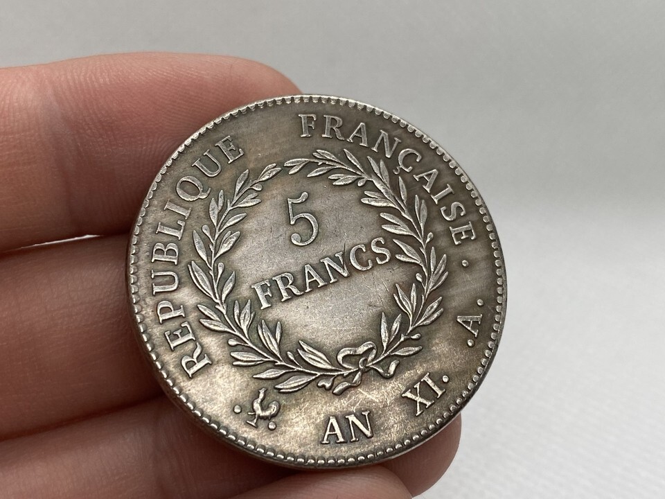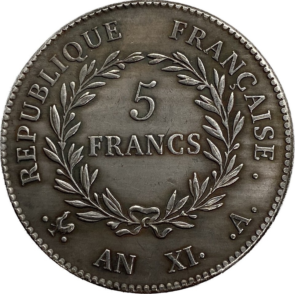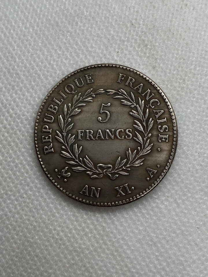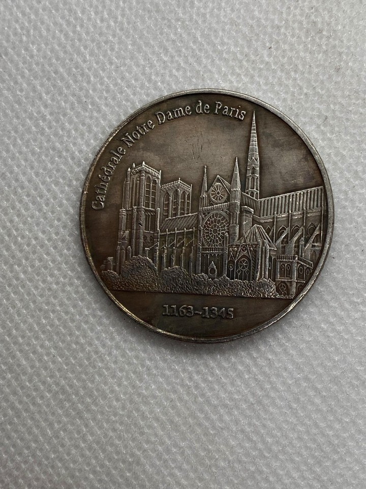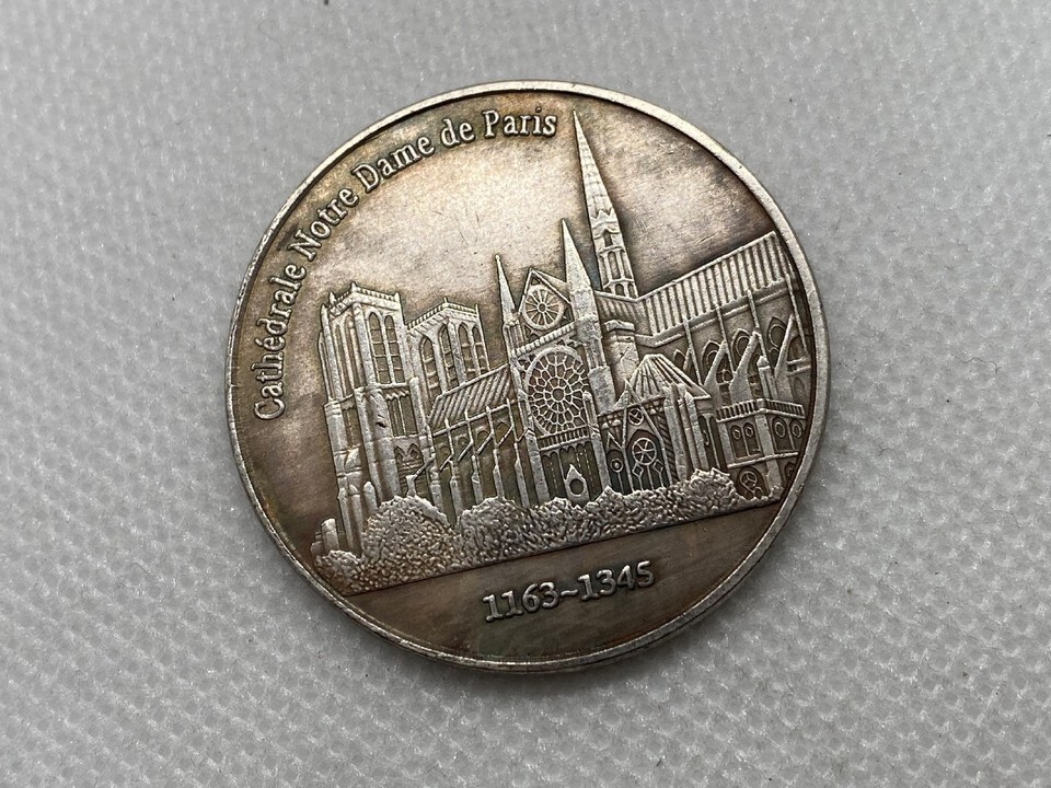 La moneda de fantasía historica de Notre Dame - replica de 5 francos es un tributo meticulosamente elaborado a la iconica catedral de Notre Dame en París, famosa por su arquitectura gotica ejemplar. Esta exquisita moneda cuenta con una representacion detallada de los atributos distinguidos de la catedral, incluidos sus iconicos rosetones y esbeltas torres, acentuadas por la inscripcion "Cathedrale Notre Dame de Paris." Construida en el lapso de casi dos siglos desde 1163 hasta 1345, Notre Dame se erige como una de las obras maestras arquitectonicas mas importantes de Francia, que simboliza la importancia cultural e historica. En el reverso de la moneda, la inscripcion "Republique Francaise" se presenta elegantemente junto con el valor "5 FRANCOS", encerrado por una corona de laurel, haciendose eco del diseño de monedas del período revolucionario en Francia. La inscripcion "AN XI" hace referencia al calendario revolucionario utilizado despues del establecimiento de la Primera República Francesa en 1792. Esta moneda es una acuñacion moderna que tiene como objetivo conmemorar los ricos valores historicos que rodean la catedral mientras sirve como un preciado objeto de coleccion para los entusiastas de la historia francesa y la arquitectura gotica. Ten en cuenta que este medallon no esta hecho de plata, un detalle a tener en cuenta al evaluar su valor y valor.