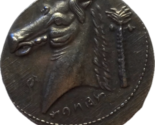 Esta replica moderna de un antiguo tetradracma griego de Siracusa ofrece una ventana al arte y el simbolismo de Sicilia del siglo V aC. El anverso presenta el perfil sereno de Aretusa, la ninfa venerada como la patrona de los manantiales de agua dulce de Siracusa, su cabello intrincadamente peinado con una diadema de cañas, un sello distintivo de las monedas de la ciudad?. La representacion detallada de su cabello y las líneas fluidas de su tocado reflejan la habilidad excepcional de los antiguos grabadores siracusanos, que eran famosos por su capacidad para mezclar el naturalismo con temas mitologicos. Este diseño, a menudo atribuido al período de la dinastía Deinomenid bajo Gelon y Jeron I, subraya la prominencia cultural de Siracusa en la Magna Grecia durante una epoca de florecimiento político y economico. El reverso presenta una poderosa imagen de la cabeza de un caballo, un símbolo profundamente ligado a la herencia ecuestre de Siracusa y sus celebres victorias en los Juegos Panhelenicos, particularmente en Olimpia?. El caballo esta representado con una melena trenzada, y una rama de palma al lado significa triunfo, un motivo común en las monedas de Siracusa destinadas a honrar los logros atleticos y militares de la ciudad?. La inscripcion "??????" (Syrako), una forma abreviada de Siracusa, rodea el diseño, afirmando el origen de la moneda. Esta pieza novedosa, aunque no es original, captura la esencia de la edad de oro de Siracusa, por lo que es una adicion convincente para los coleccionistas fascinados por la antigua numismatica griega y el legado historico de una de las ciudades-estado mas influyentes de Sicilia?.