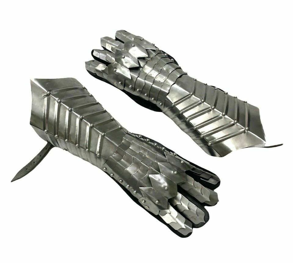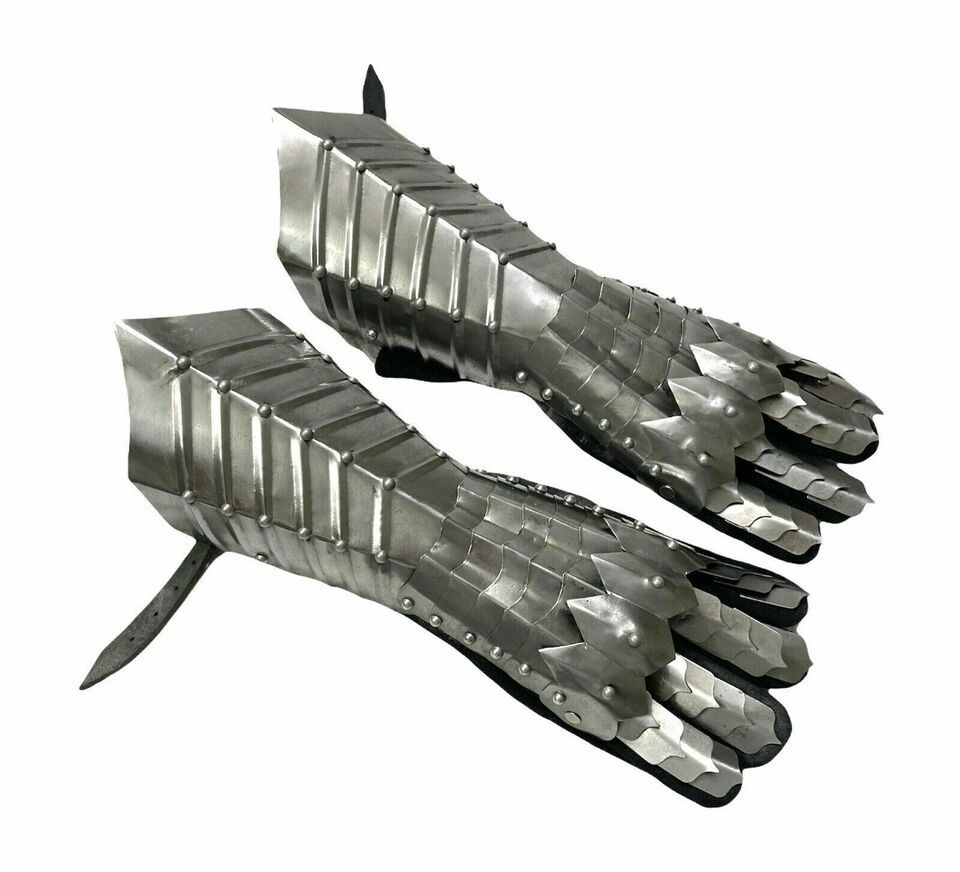 - Medieval Gauntlet Silver Steel Gloves Pair Armor Halloween Handmade Costume Gift