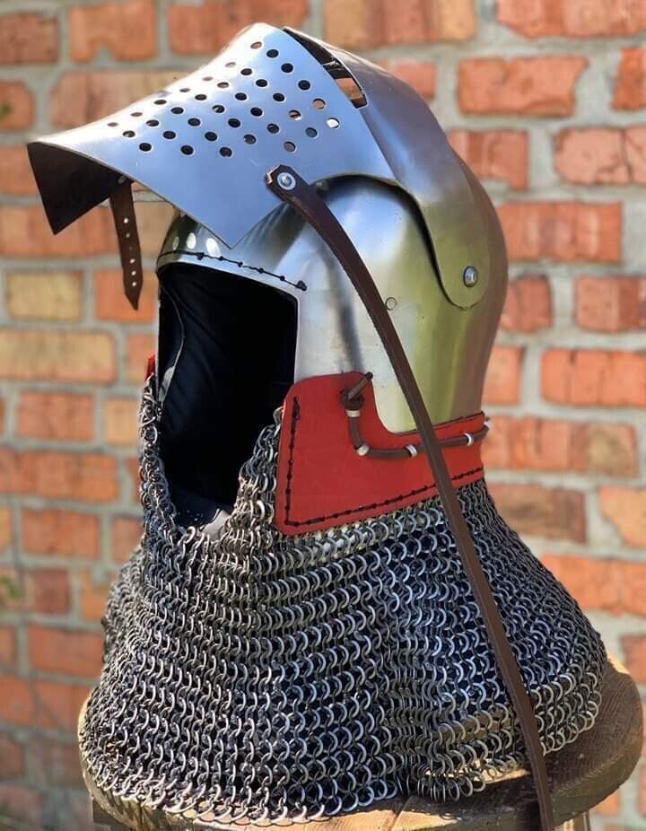 - Medieval Knight Armor Chain Mail Helmet 16 Gage Steel Barbute Armor Helmet