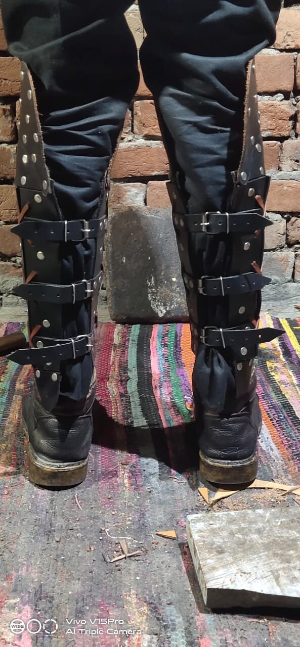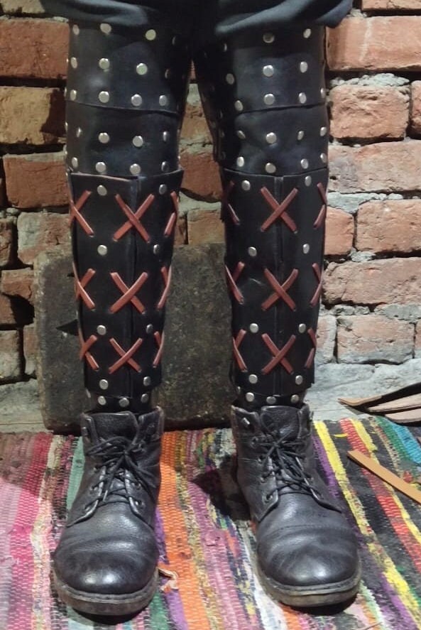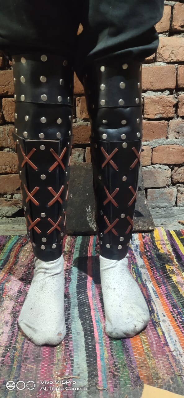 Medieval Leather Samurai Greaves | Leather armor for SCA LARP and Cosplay Halloween Viking Leg Guards