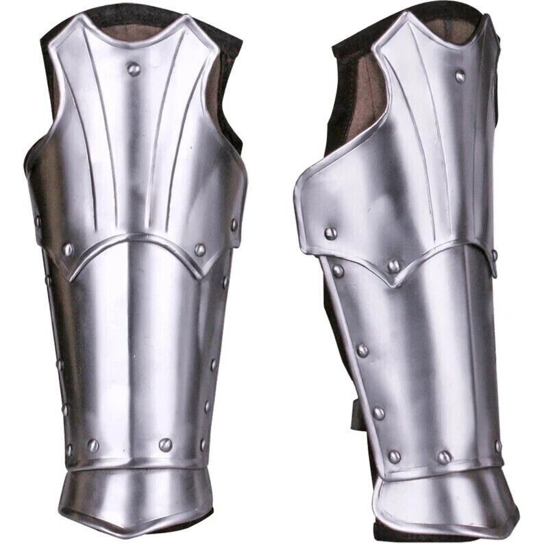 When you want excellent protection in battle without sacrificing comfort, the Steel Fafnir Bracers make the ideal solution. These steel bracers are crafted with metal plates that are riveted on a backing of padded suede leather. This design ensures that the LARP armour feels comfortable even when worn for long periods of time or while marching or running. Corrugated detailing on the steel plate armour does not only add decoration but stability to the piece. The arm armour shows off a bright metal finish that suits knight and warrior characters of all kinds. Be sure to check out all of our Fafnir-style armour when preparing for your next LARP battle or re-enactment.