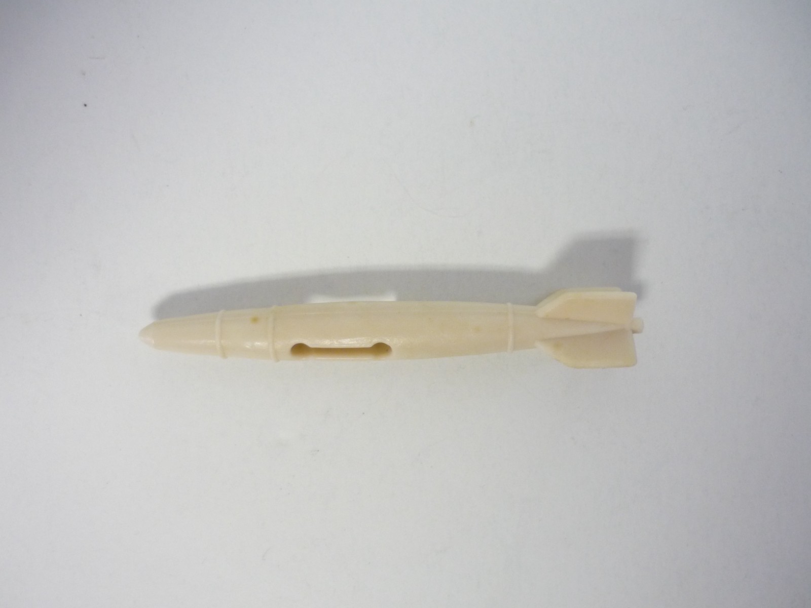 ITEM: Mega Force Stratofortress Large Bomb White Missile TYPE: 1989 Vintage Action Figure Accessory Part NOTES: Comes as Shown