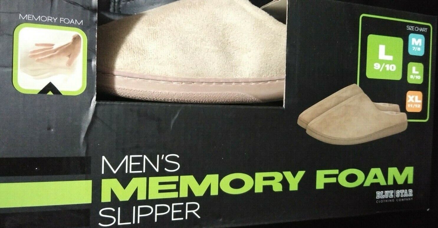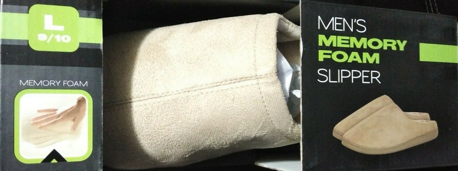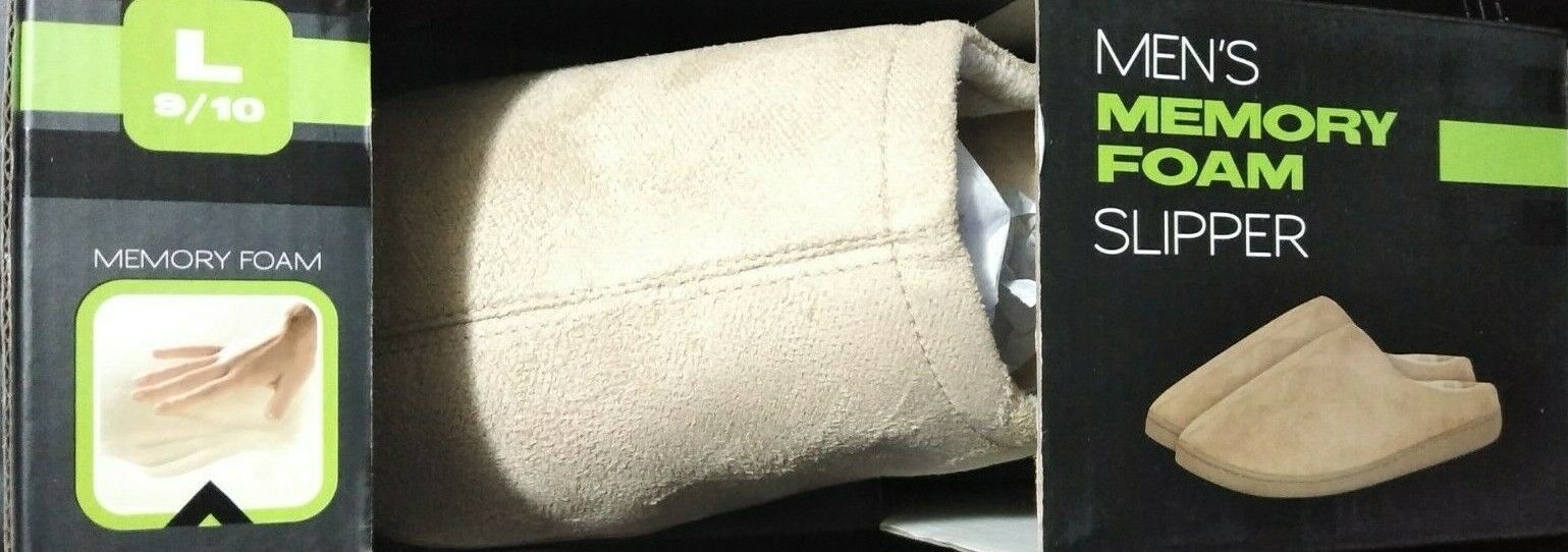 You are Buying a brand New Pair Of Memory Foam Slippers Warm wool lining for Men's Size Large 9/10 Color Beige. Most comfortable with these men's Memory Foam Slippers.