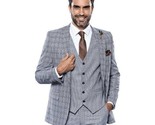 Primary image for Men 3pc Vest Suit WESSI by J.VALINTIN Extra Slim Fit JV42 Blue Plaid TURKEY USA