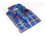Men Linen Sports Shirt By INSERCH English Plaid European 2905 Blue Multi Checker