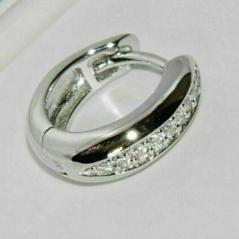 - Men's 10k White Gold Finish Huggie Hoop Single Earring 0.25 Ct Simulated Diamond