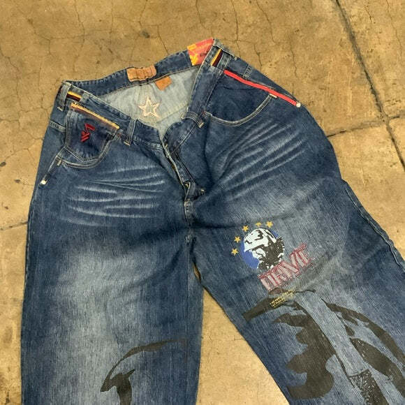 - Men's Arme Blue “Welcome to the Hood” Denim Pants NWT