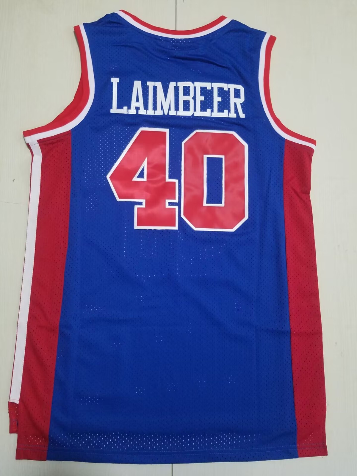 - Men's Bill Laimbeer #40 Jersey 1988/89 Throwback Pistons Blue Uniform