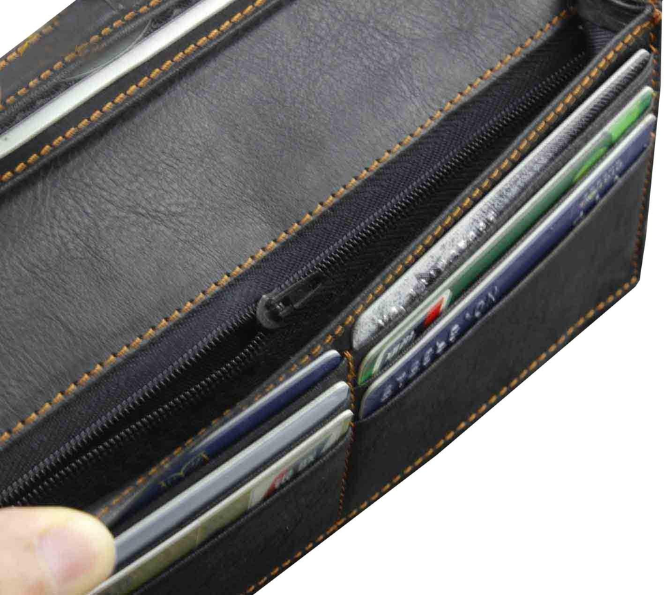 The Vogueteen Men's Black Leather Biker Wallet with Chain and Concho Design is the perfect accessory for those who appreciate both style and functionality. Crafted from genuine leather, this wallet combines durability with a sleek aesthetic, making it suitable for everyday use or special occasions. With an impressive array of storage options, including 11 card slots, an ID window, a zip pocket, and two cash pockets, this wallet is designed to keep your essentials organized while maintaining a compact profile. The included chain adds an extra layer of security, ensuring that your wallet stays close at hand while you ride or move about your day.