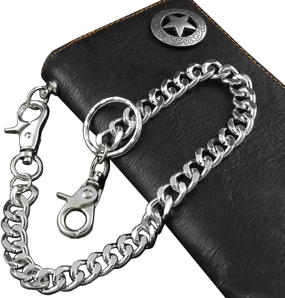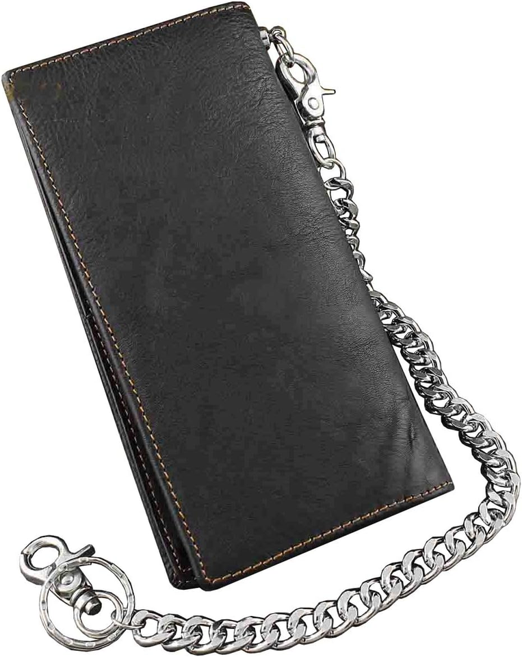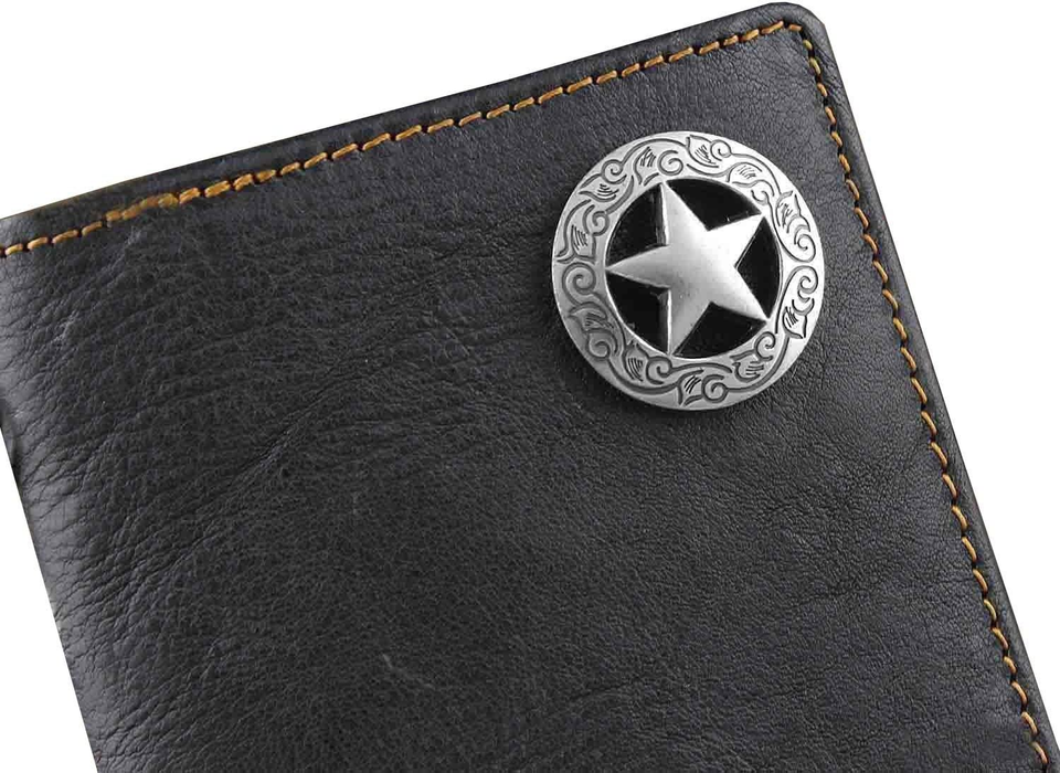 - Men's Black Leather Biker Wallet with Chain and Concho Design