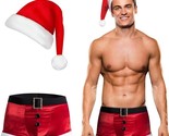 - Men's Christmas Lingerie Sexy Santa Outfits Red Boxers Holiday Briefs With Hat
