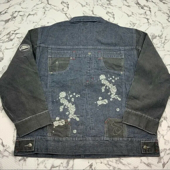 - Men's Davoucci Blue | Gray Corduroy Casual Denim Jacket NWT