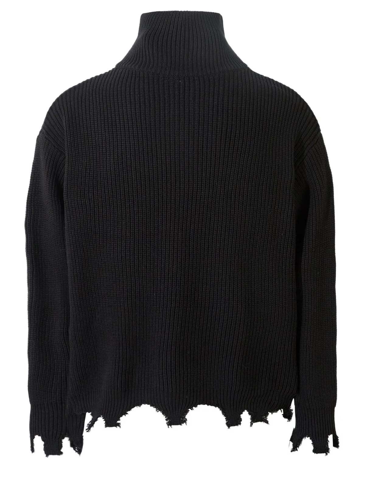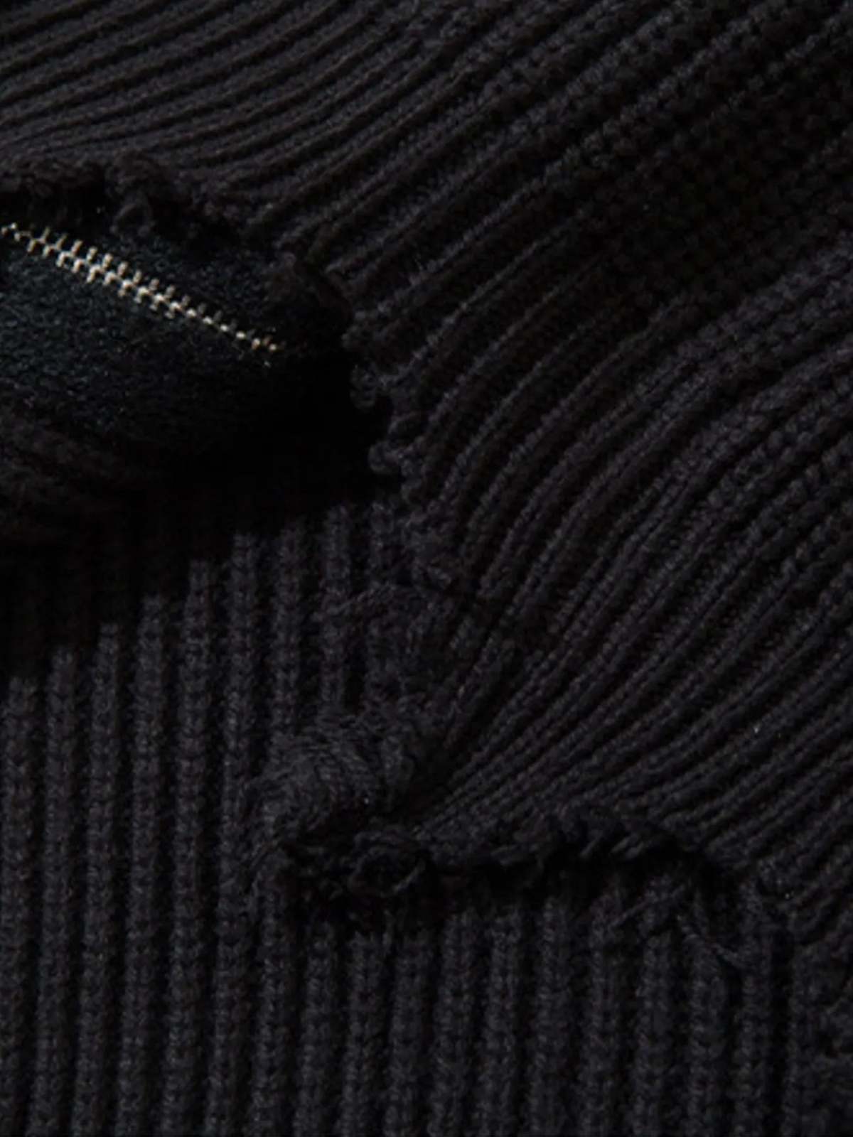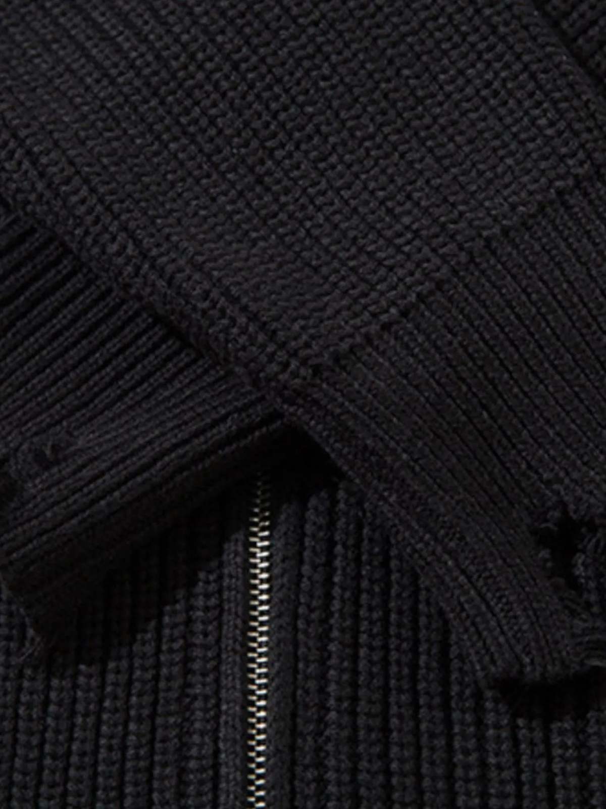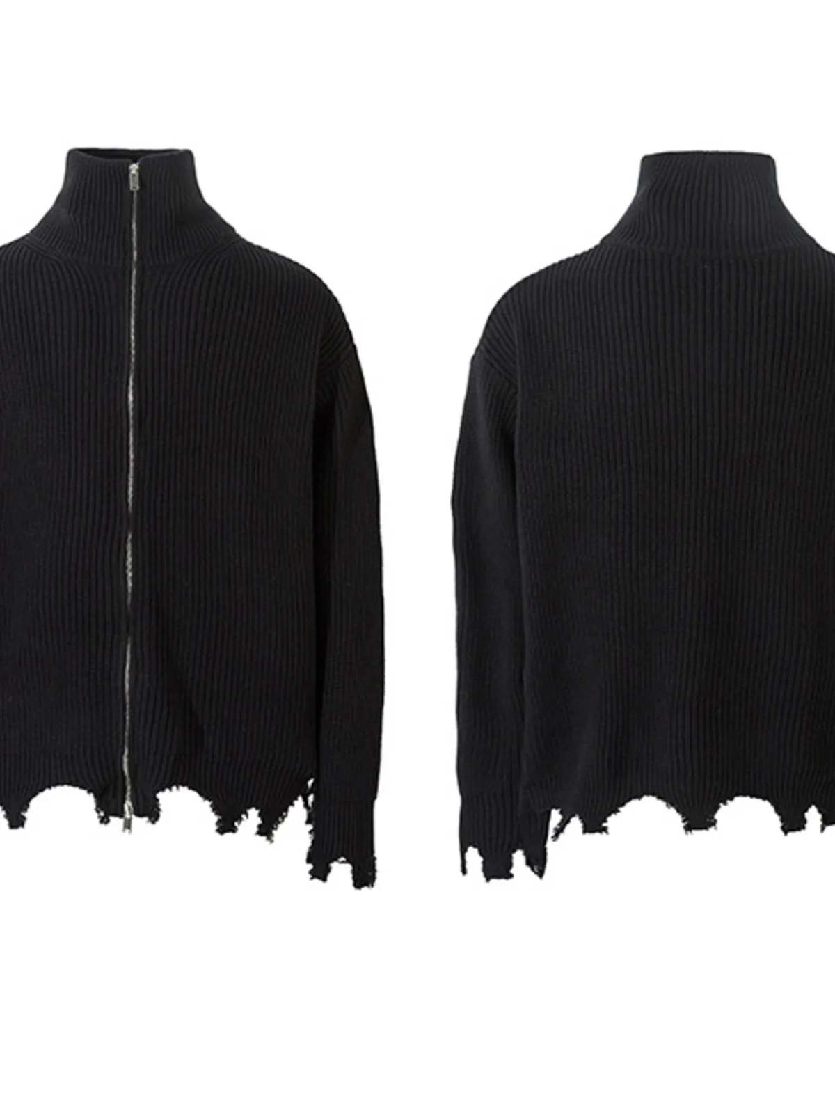 - Men's Distressed Hem Ribbed Knit Zip-Up Cardigan