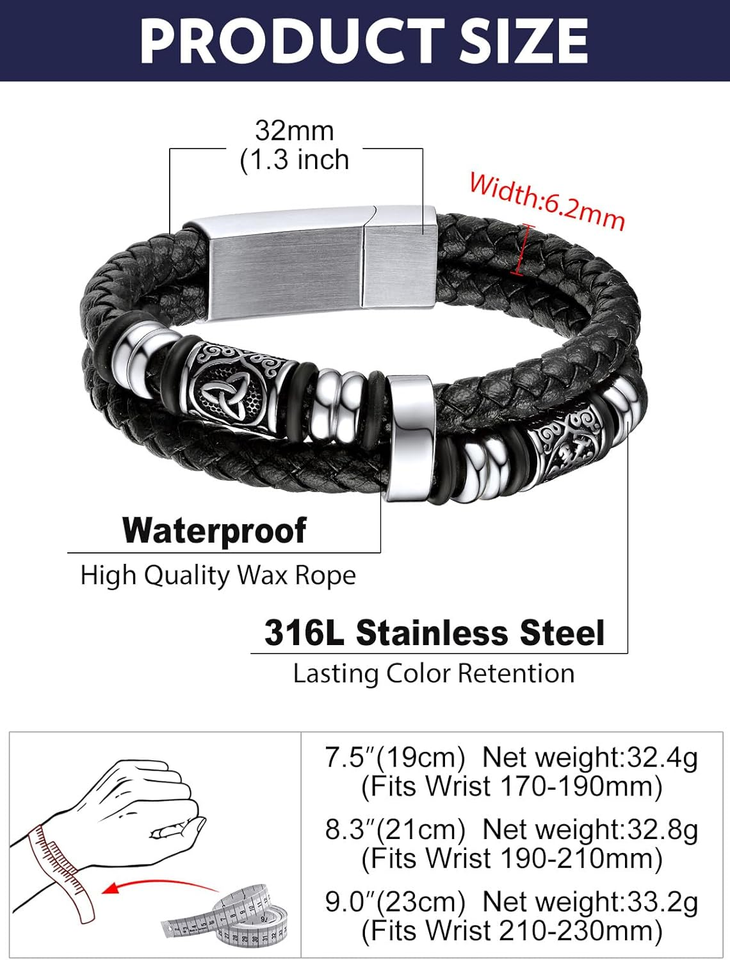 The Bandmax Men's Double Layer Black Braided Leather Wristband with Steel Beads is a sophisticated accessory designed for the modern man. This wristband combines the rugged charm of braided leather with the sleek elegance of stainless steel beads, making it a versatile addition to any wardrobe. Whether you're dressing up for a formal event or adding a touch of flair to your everyday attire, this wristband is the perfect choice.