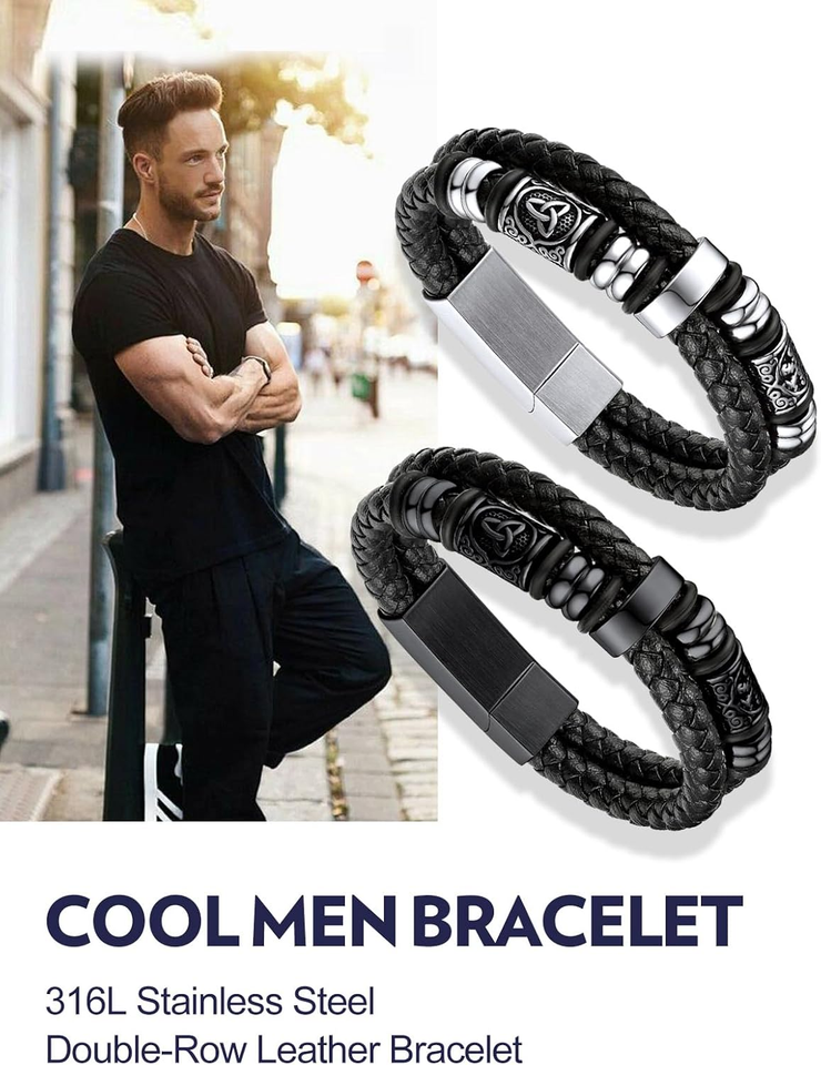 Elevate Your Style with Bandmax Men's Double Layer Black Braided Leather Wristband