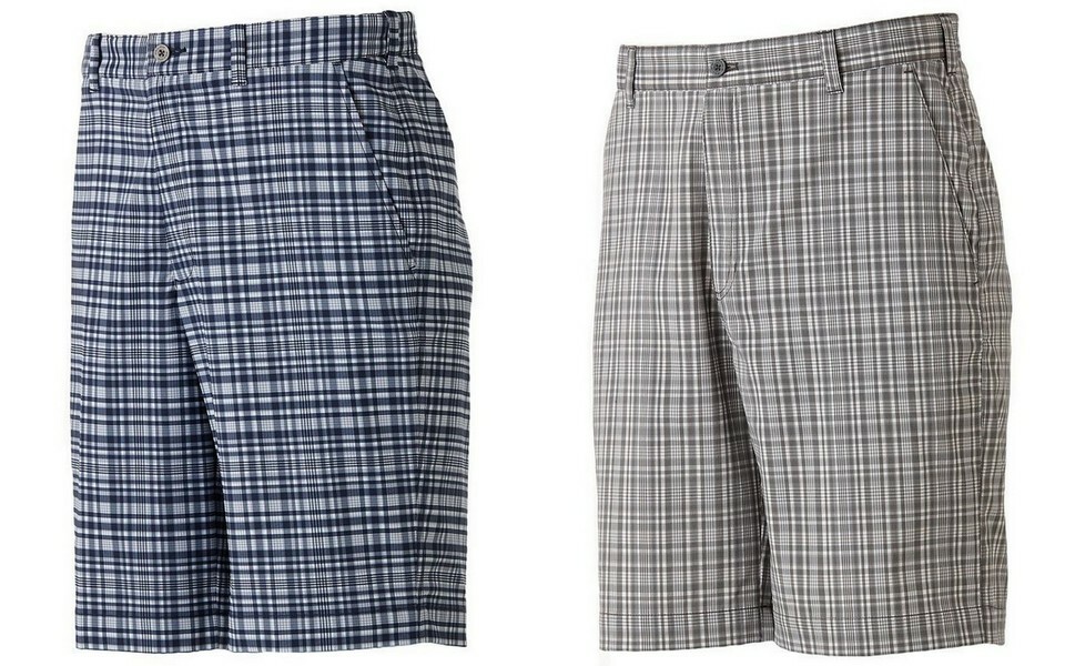 Fairway fashion. From the yarn-dyed plaid pattern to the performance design and elastic waistband, these men's golf shorts from Nick Faldo keep you comfortable from tee to green.