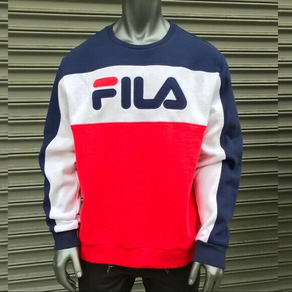 - Men's Fila Navy White Red Fleece Pullover Crewneck