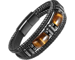 - Men's Handmade Black Leather Tiger Eye Bracelet for Courage and Protection